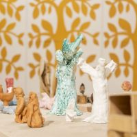 Algunas de las formas de los “Arsintes” son ahora el leitmotiv de esta exposición, o, más, bien, de la museografía de esta exposición. Construidas por el carpintero vallisoletano Jesús Morejón, las peanas de madera que pueblan el espacio expositivo siguen los patrones diseñados por Ferrant. Sobre ellas se exhiben esculturas de Ferrant y documentación de sus experimentos pedagógicos junto con objetos realizados por niños en los diferentes talleres organizados por Antonio Ballester, para quien, como para Ferrant, el arte y el aprendizaje son una misma cosa. Así, como si se evaporaran los 85 años que han pasado desde entonces, los “Arsintes” de Ferrant invitan hoy de nuevo a abrir nuevos caminos en la enseñanza artística, como bien revelan los trabajos de niñas y niños de Madrid, México o Brasil, con quienes Antonio Ballester ha compartido la inquietud crítica y social que entonces compartió también Ferrant con las niñas y niños de aquellos convulsos tiempos.