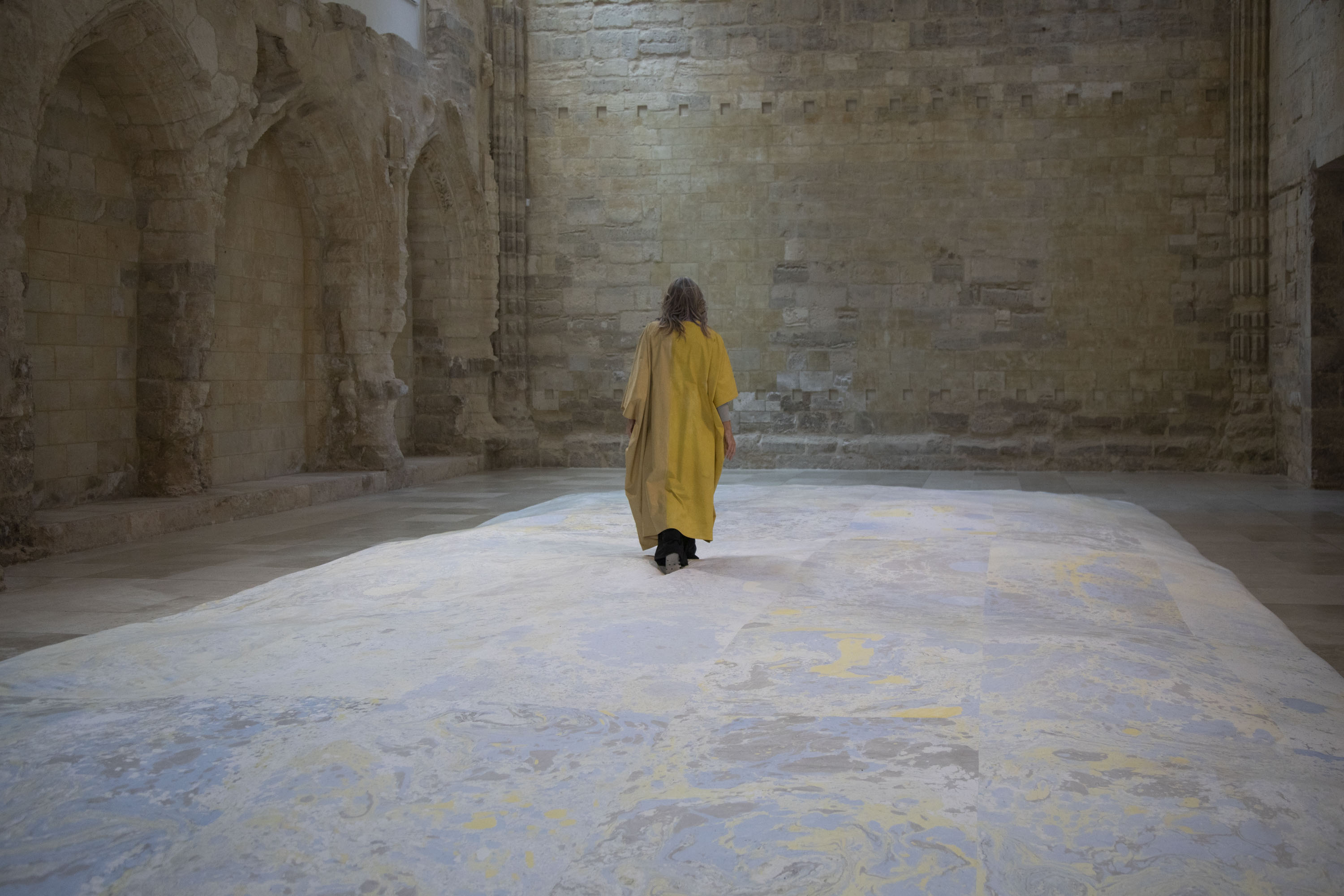 Los espacios del Museo Patio Herreriano no son desconocidos para Belén Rodríguez (Valladolid, 1981). Formada entre Madrid y Viena, recibió en 2018 la beca de la Fundación Municipal de Cultura que traería consigo su individual en la Sala 0. En 2021 participó en la muestra colectiva “Pintura. Renovación permanente”, comisariada por Mariano Navarro, y ahora da el salto a la Capilla de los Condes de Fuensaldaña, nuestro espacio más emblemático y uno de los escenarios para la intervención más exigentes y relevantes de nuestro país. Bajo el título “Sal metálica”, la artista creará una gran instalación en la que se concentran buena parte de sus intereses últimos, alojados en una reflexión en torno a la pintura y el color que oscila entre la imagen y el espacio y que en las salas del Museo alcanzan una escala sin precedentes. Esta exposición, la tercera en el Museo Patio Herreriano, permite observar la evolución de una artista para quien la exploración de todo lo relativo al color se inscribe en fórmulas singulares y en un amplio abanico de procedimientos. Y lo hace desde la constancia de la potencial naturaleza líquida de la imagen pictórica y, al mismo tiempo, de su dimensión a una dimensión táctil, con ese juego de pliegues y texturas reminiscente de cierta impronta barroca.