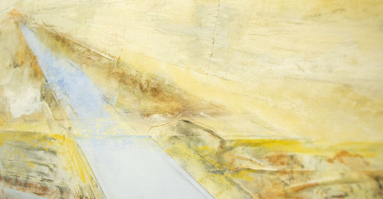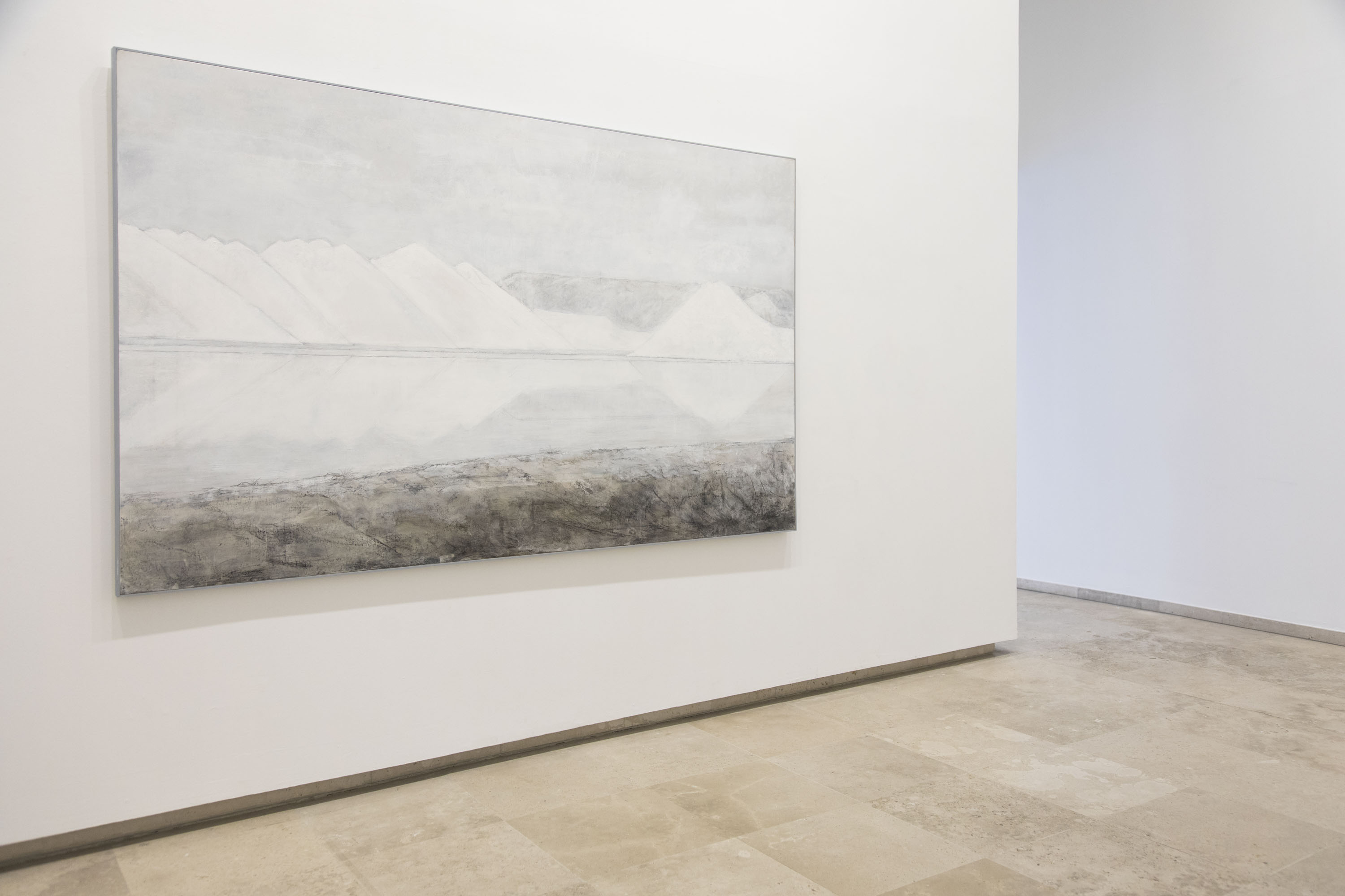 All of Carmen Laffón’s work requires detailed observation, and, as her latest work, so generous in its formats, reveals, you can’t just walk past it. Her works of art cannot be assimilated at a single glance. You have to travel through them, because they are spaces of an unknown amplitude, in which the range of shades is extraordinary. She apparently uses a more limited palette, but the detailed observance the paintings demand enables us to see a chromatic wealth as amazing as the weft of textures in which the painting is entangled. The pictorial space is governed by large mounds of salt, the protagonists of the series, but there is a tension between image and matter in these paintings that sometimes causes the former to blend into the latter. Carmen Laffón’s salt mounds are found in the space between the foreground and the background, between the earthy and the ethereal. The mountains of salt have a resounding presence but cannot elude a certain evanescent aspect, as if they were something spectral.