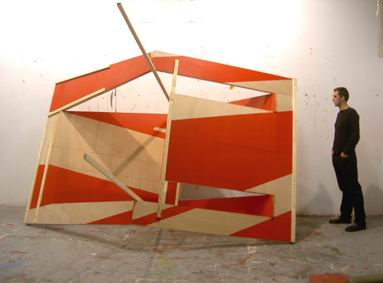 A través del análisis del título de esta obra, Casa Roja (Rodchenko nº 29) podemos hacer una interpretación de lo que el artista nos ha querido transmitir. En primer lugar se muestra su especial interés tal y como comentábamos anteriormente por la obra del artista ruso Rodchenko. Y en segundo lugar, en este caso a través del empleo de una escala gigante, se crea un espacio construido, una estructura en la que podernos refugiar, el artista ha creado una Casa Roja. El material empleado no es neutro, nuevo y pulcro como las estructuras de Rodchenko sino que son objetos utilizados, con una historia detrás, que una vez que han sido desechados por la sociedad el artista los recupera y les dota de un nuevo significado. Obra de fuerte carácter instalativo que activa el espacio en el que se muestra, en este caso la Capilla de los Condes de Fuensaldaña.