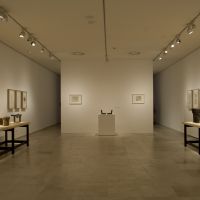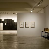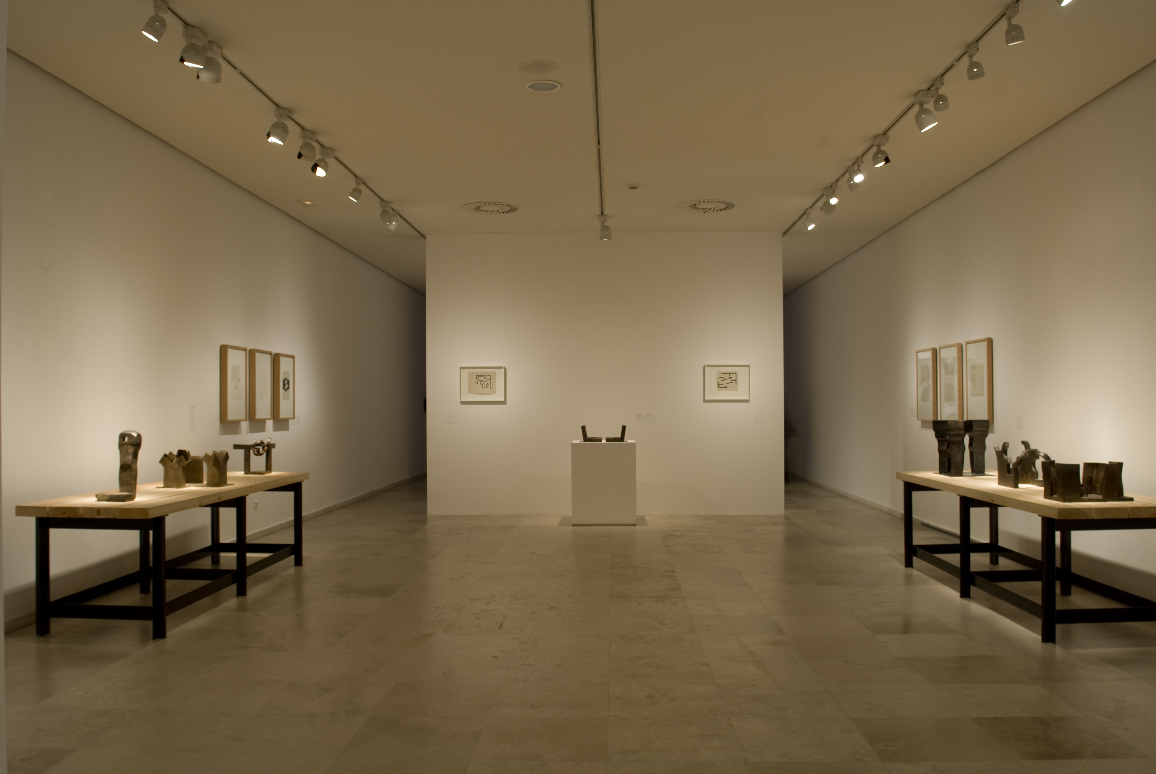 Dibujos. Si las esculturas realizadas en ese periodo tienen un ritmo más pausado, y el artista antepone las formas reflexivas y meditadas a la espontaneidad y la rapidez, esa idea se traslada también a los dibujos. Dentro de los seleccionados para la presente exposición, se pueden diferenciar tres tipos: por un lado, una serie de dibujos de tinta negra de trazos gruesos; por otro, dibujos de finas lÃneas realizados a lápiz o con tinta inspirados en el poema La casa del olvido, del poeta donostiarra Carlos Aurtenetxe; y por último, tres dibujos de manos.