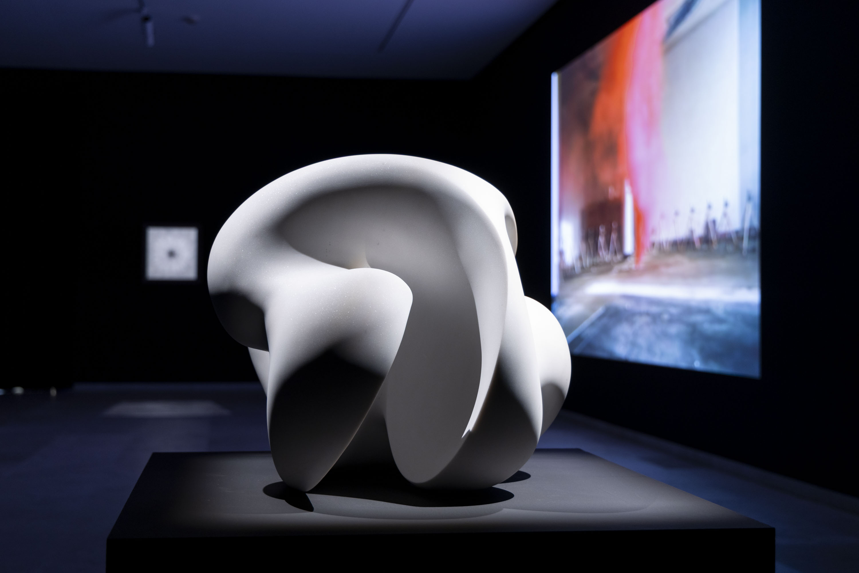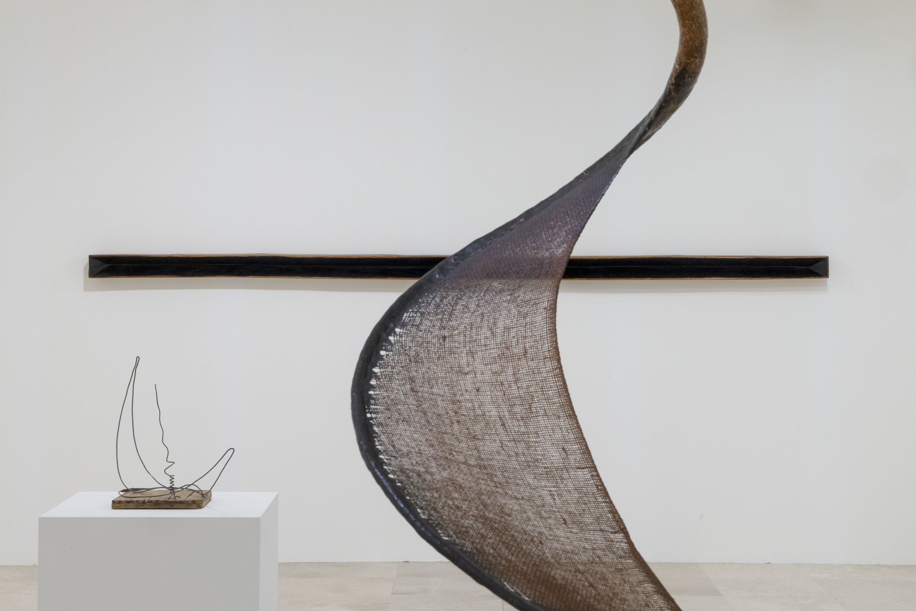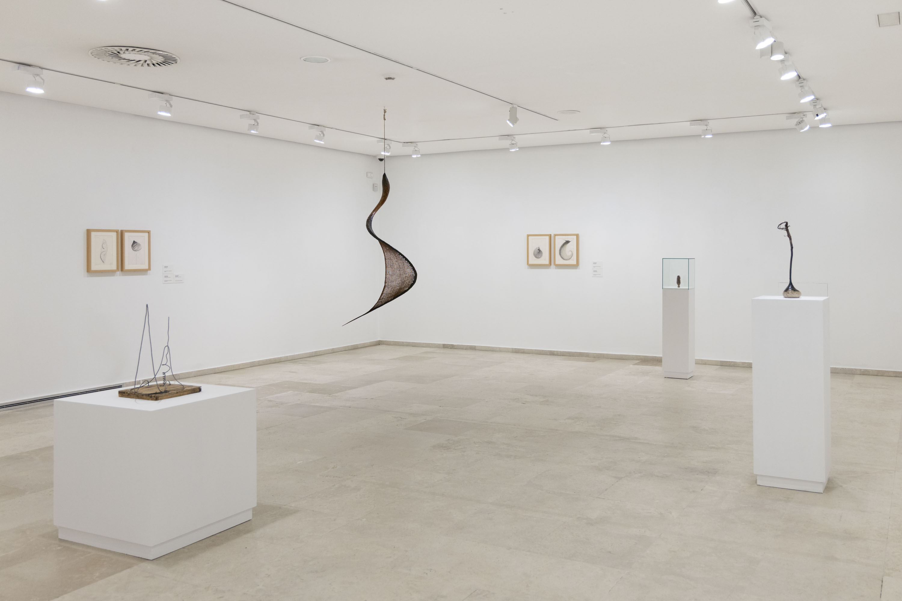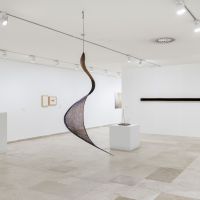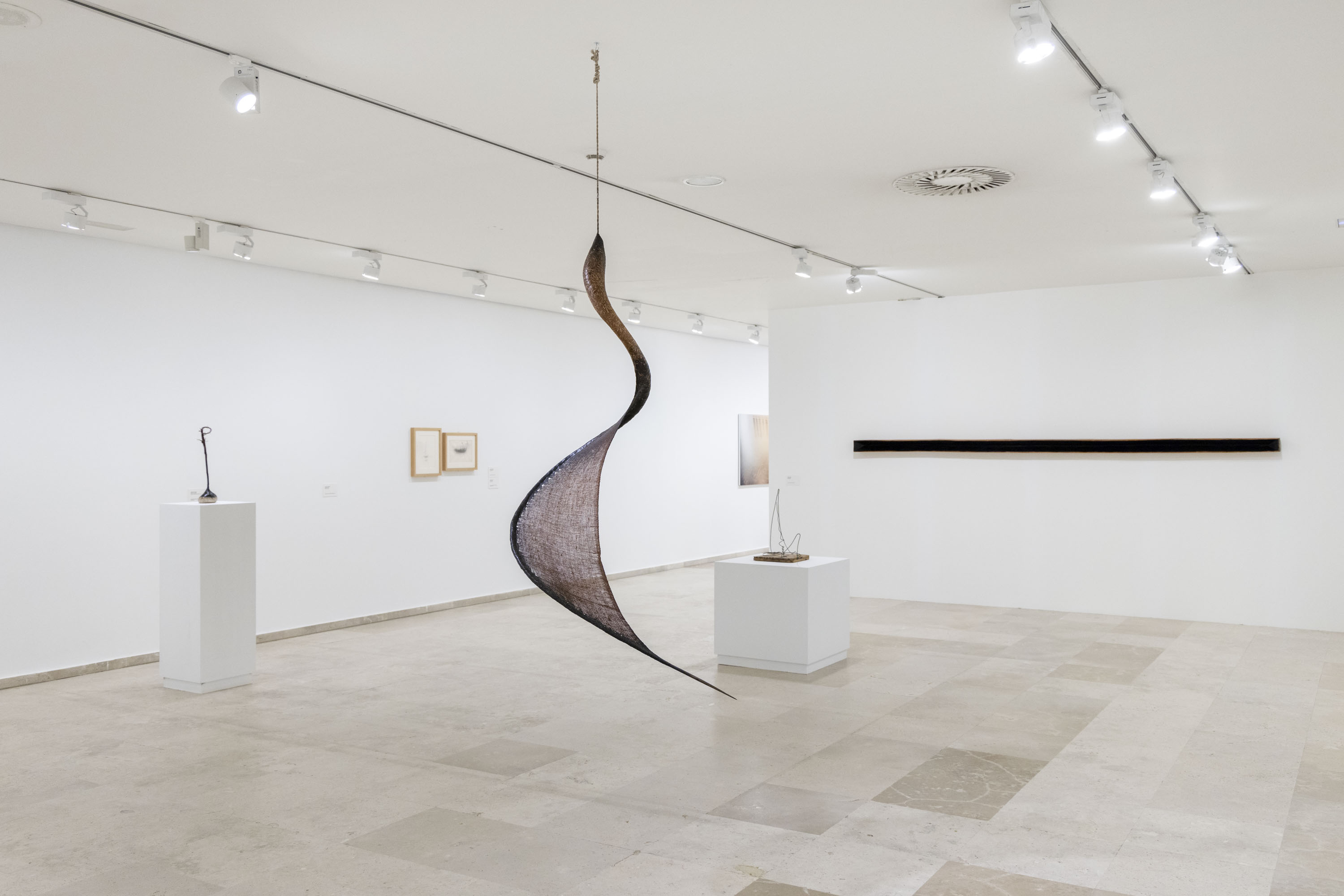 En esta serie de connivencias se afirman analogías formales y formas de hacer análogas. La exposición se despliega en tres espacios de la segunda planta. En uno de ellas, la Sala 3, vemos obras de Soledad Sevilla, Jordi Teixidor, Eusebio Sempere, Elena Asins, Rosa Brun, Juan Luis Moraza o Joaquím Chancho. Lo primero que cabría decir de este espacio es que entre las obras hay vínculos profundos a partir de una herencia de corte minimalista. Cierto. Y paradójico. Pero no podemos olvidar que el minimalismo nunca quiso decir gran cosa y que en lo que aquí se ve se adivina más una apuesta por la seducción rítmica y cromática que por la voz enmudecida y ombliguista del arte minimalista. Corre el aire, eso sí. Al fondo, Baltasar Lobo encuentra a Carlos León. La voluptuosidad y ambigüedad en la forma del primero y la finísima línea que separa la representación de la abstracción en el segundo sitúa a ambos artistas a un mismo tiempo en tierra de nadie y en medio de todo, tal es la ambivalencia del elenco de fuerzas que desprenden.