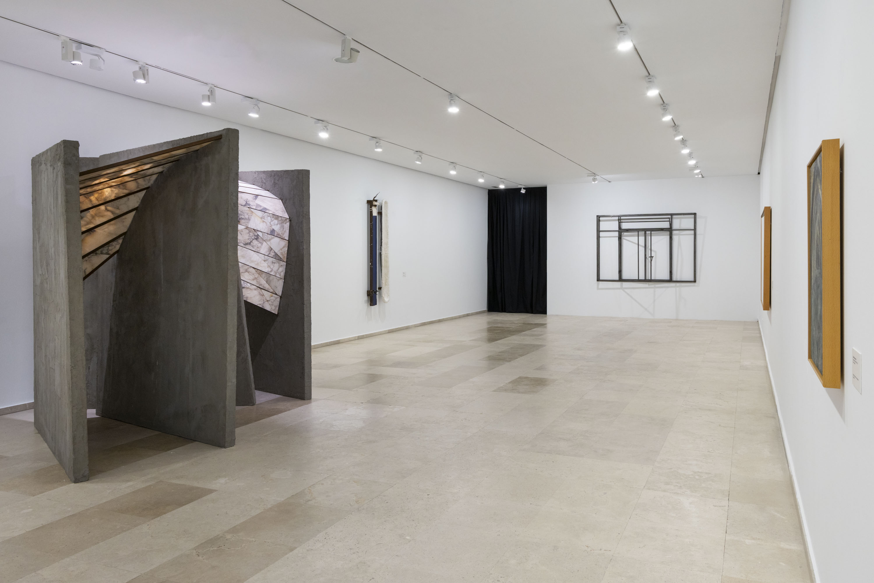 En la sala 4 encontramos obras de artistas de diferentes generaciones y contextos. Hay un cierto ánimo constructivo que no sabemos si tiene la suficiente solvencia como hilo conductor, pues lo que se ve no sea tal vez más que un conjunto de esquemas, de estructuras. El espacio se contempla y se habita, intuimos, aunque a veces esta idea de habitabilidad nos resulta frustrante (en una de las piezas, la de Jaime de la Jara, se nos advierte además de que, desde una ventana, nos pueden disparar). Parecen más frías estas piezas, algunas de gran formato, como la de Cristina Iglesias, que muchas de las que supuestamente deberían ser de verdad frías, las de raíz pretendidamente minimalistas, como las de la sala 3. Aquí se imponen los ocres, y el espacio -que se pretende dirigido a reflexionar precisamente sobre eso, el concepto de espacio- se encona de forma no siempre amable, al menos de momento, porque algunas de estas piezas sugieren que el lugar está todavía haciéndose, pues algunas o acaparan con rotundidad más que ocuparlo armónicamente. Más adelante, esa idea de ir fraguándose entra en conflicto consigo misma. Entre el vídeo de Sergio Prego y el mármol del Equipo 57 hay cincuenta años de distancia; también una voluntad de no dar por cerrado el proceso perceptivo, de que permanezca en una indefinición perpetua.