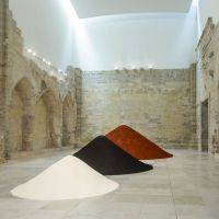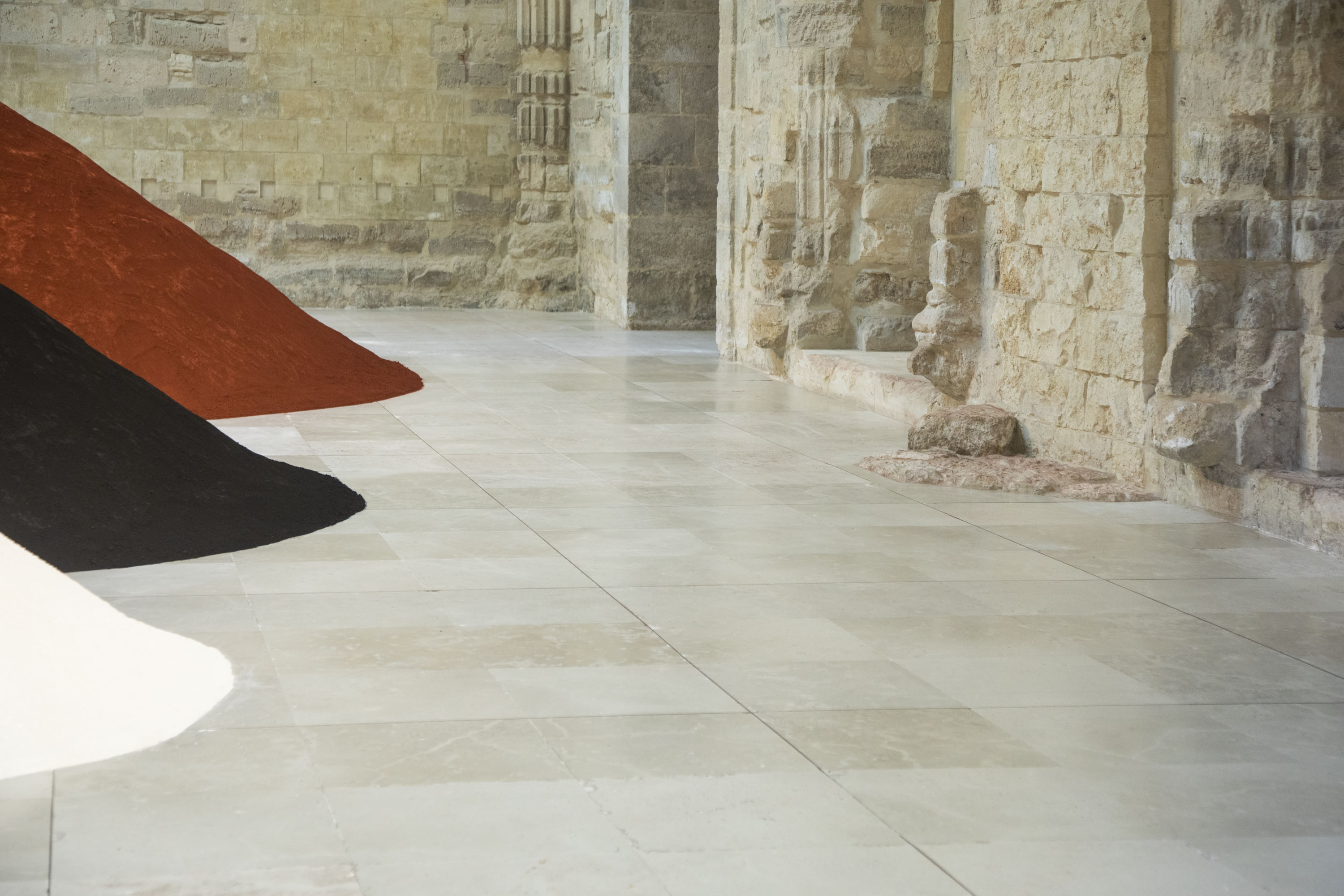 There is a kind of revisionist desire in what underlies the “reverse of monuments”, from which Lootz aims at a new interpretation of history. We understand her commemorative sculpture as the celebration in stone of a significant deed destined to reinforce the hegemonic reading of the past of a nation. The installation in the chapel opposes this with the literal materiality of iron oxide, obtained from the earth, which suggests, by means of the naked presentation of the material, a return to the roots not only of monuments, but also of civilization itself. The artist thereby proposes a re-vision of the conventional narrative of monuments and suggests a new landscape, which rises up over the horizon once we have learnt the lessons of history and torn down its patriarchal vices.