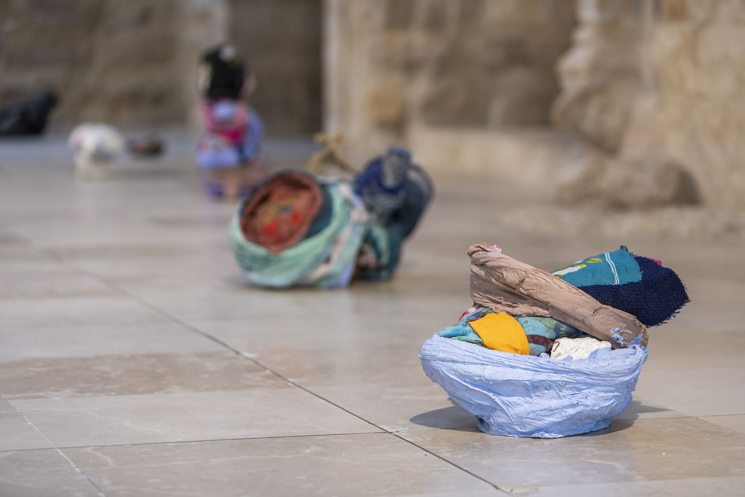 Y es que en la obra de Elena Aitzkoa lo vivido tiene una impronta esencial. La libertad que se adjudica para acudir a elementos tan dispares, no ya sólo dentro del ámbito de la escultura sino también de la poesía o de la música, produce “momentos” de frescura y exuberancia asombrosos. Uno podría pensar que, si regresa a ver la exposición tras una primera visita, todo podría haber cambiado de sitio, mutado, evolucionado hacia direcciones imprevisibles. No es de extrañar que muchas de las esculturas de la artista tengan el aspecto de hatillos que pudieran trasladarse de un lado a otro, acompañando tal vez a la artista en sus andanzas.