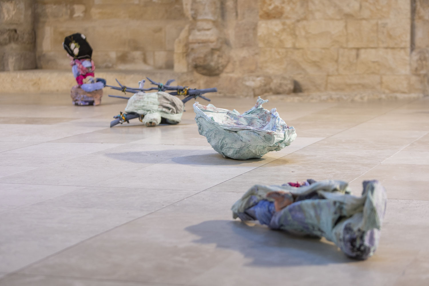 Zarza Corazón, la intervención de mayor escala realizada por la artista hasta la fecha, está compuesta por un número importante de obras de formatos y materiales diversos que se diseminan a lo largo y ancho de la Capilla. Aitzkoa ensambla en sus piezas muy variadas nociones temporales, pues en ellas el pasado y el presente configuran una unidad indivisible.