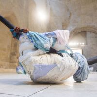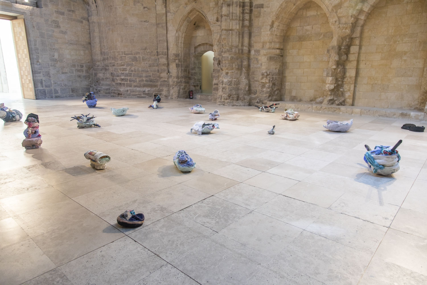 Vitoria born Elena Aitzkoa’s work is usually framed in the field of sculpture, something that this exhibition at the Museum’s Chapel of Condes de Fuensaldaña Chapel , one of Spain’s most important exhibition spaces, certainly comfirms. However, to the strong formal aspect of her work the artist adds her inclinations towards music and poetry, elements that turn out to be visibly active, such is the performative taste of her work.