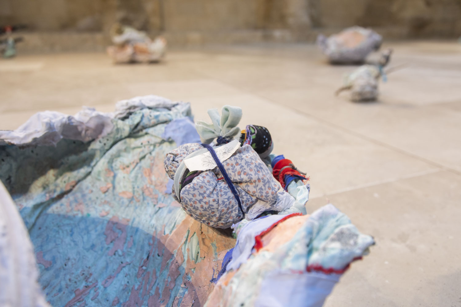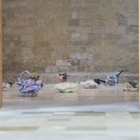In her work, her own vital experience plays a key role. The freedom and the immediacy under which she intermingles such diverse media, including music and poetry, produce moments of outstanding freshness and exuberance. On entering the space for the second time after a first visit, one would be inclined to think that things have changed their position, that they may have muted, transformed or somehow suffered a displacement towards unpredictible regions. It is no surprise that many of her sculptures are similar to bundles that could accompany the artist in her movements.