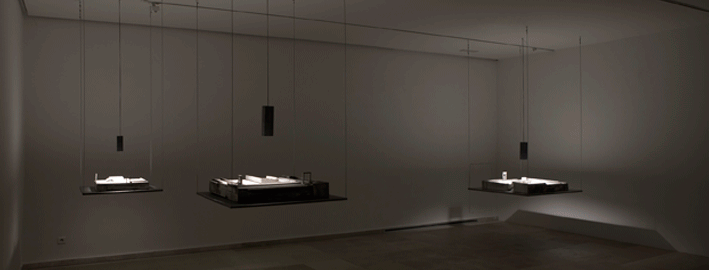 Ignacio Llamas construye sus metáforas proponiéndonos imágenes de lugares fÃsicos. Unas construcciones arquitectónicas en las que su espacialidad se ve matizada por la luz. Esa luz, que crea sombras, brillos, zonas intermedias de penumbra e indefinición, es su único inquilino. En este microcosmos su protagonismo nos hace percibir al menos una doble lectura. Por un lado el espectador la siente como imagen de su interior, de su propia alma, de aquel espÃritu que vaga o recorre su propio mundo. Y por otro la percibe como un elemento transformador de todas esas realidades dolorosas, capaz de convertirlas con sus matizados negros, blancos y grises, en una experiencia transformadora.