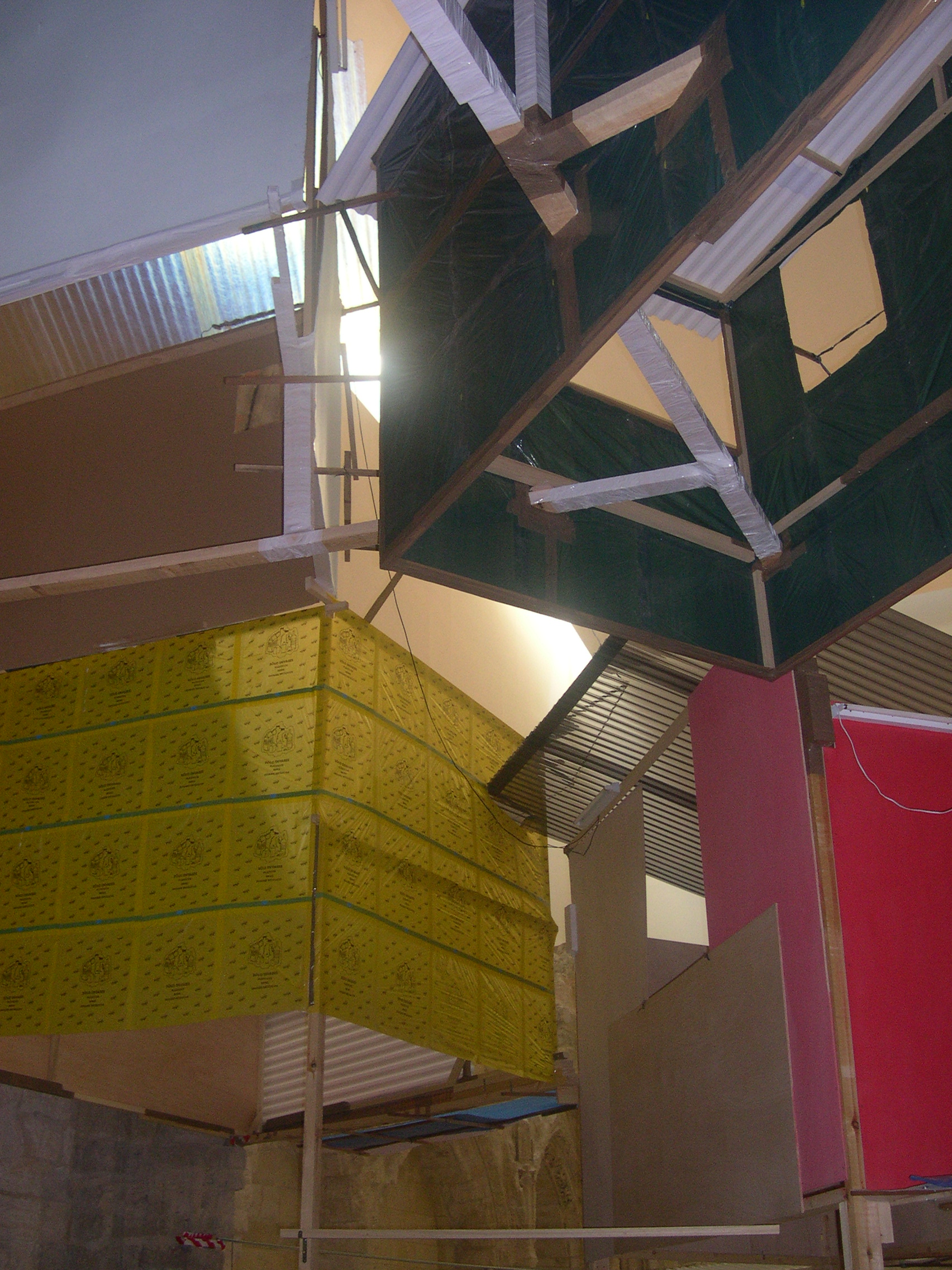 Sin embargo, la experiencia de la construcción de un grupo de favelas, un proceso casi performativo, pone en evidencia que la favela tampoco es una mera tipología arquitectónica. La Gran favela, como todas las favelas de este mundo, está construida sin planos, sin un programa de recursos codificados. En el museo esta favela crece de forma empírica, práctica, adaptándose a lo preexistente, hasta ocupar y ocultar el espacio sobre el que se apoya. En su subida aprovecha los resquicios y huecos de las paredes para anclarse, atrayendo este inseguro detalle toda la fuerza simbólica de lo que se asienta sobre una falla. Su construcción exige un trabajo en equipo, donde las soluciones ingeniosas y aparentemente inestables articulan los pesos constructivos e imaginativos. El tamaño importa, claro. La escala se convierte en un factor definitorio, no sólo porque alude a la "gran escala" de su referente real, sino porque esta escala habla también de un esfuerzo. Palomino dice: "A la intención de significar no se llega sin esfuerzo; es más, pienso que la construcción de significados requiere poner en marcha un proceso de concentración y orientación de energías a las que difícilmente se puede llegar sin grandes dosis de trabajo".