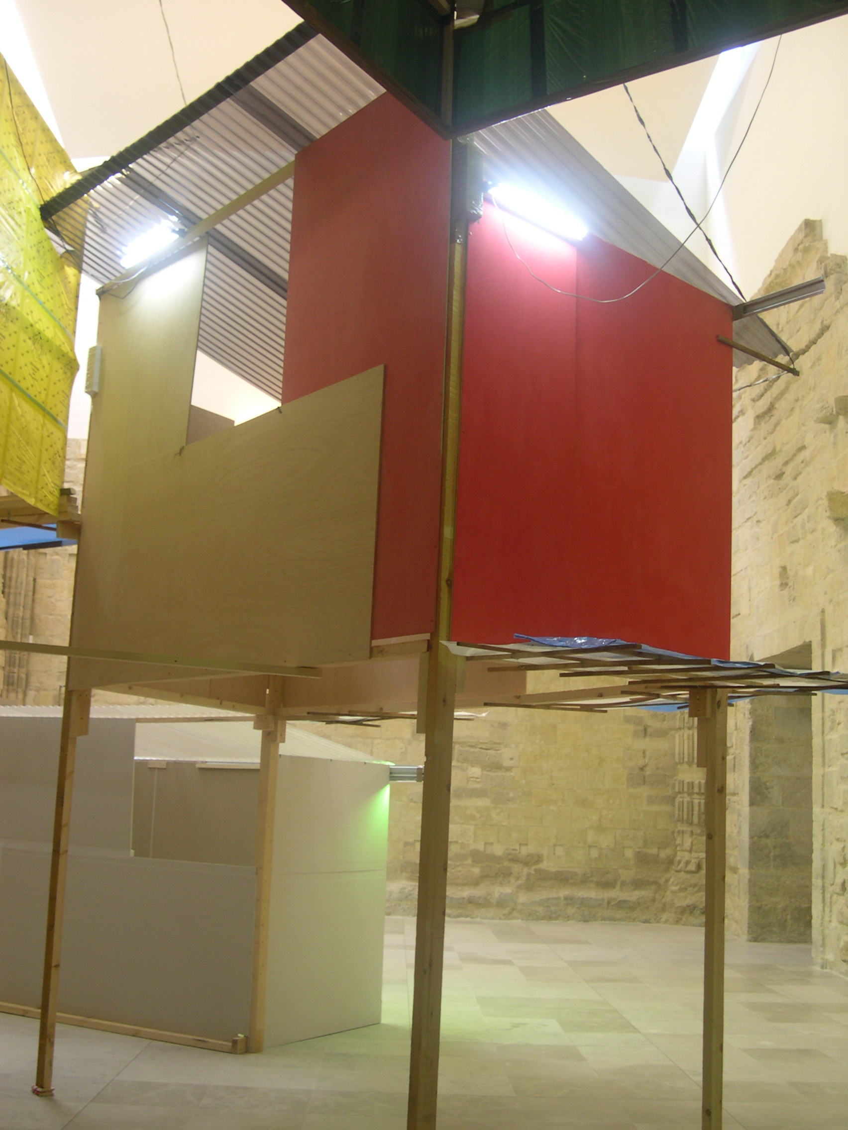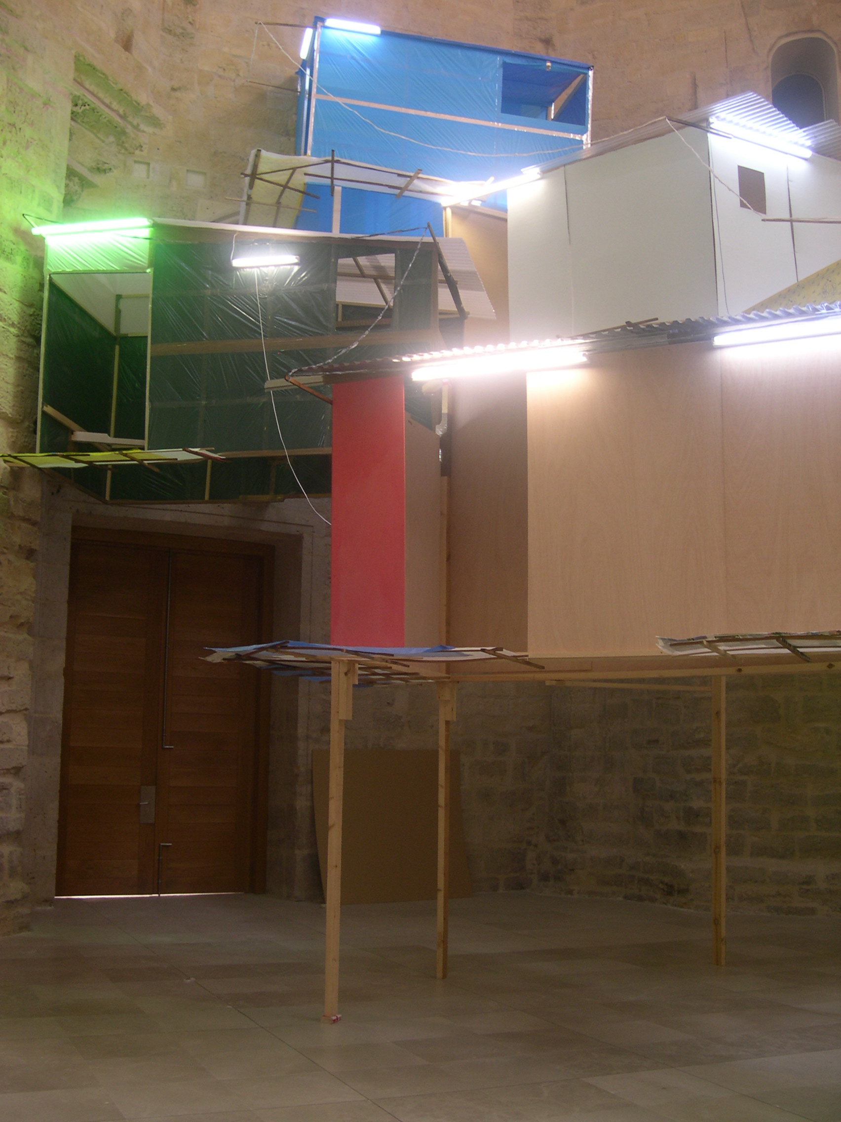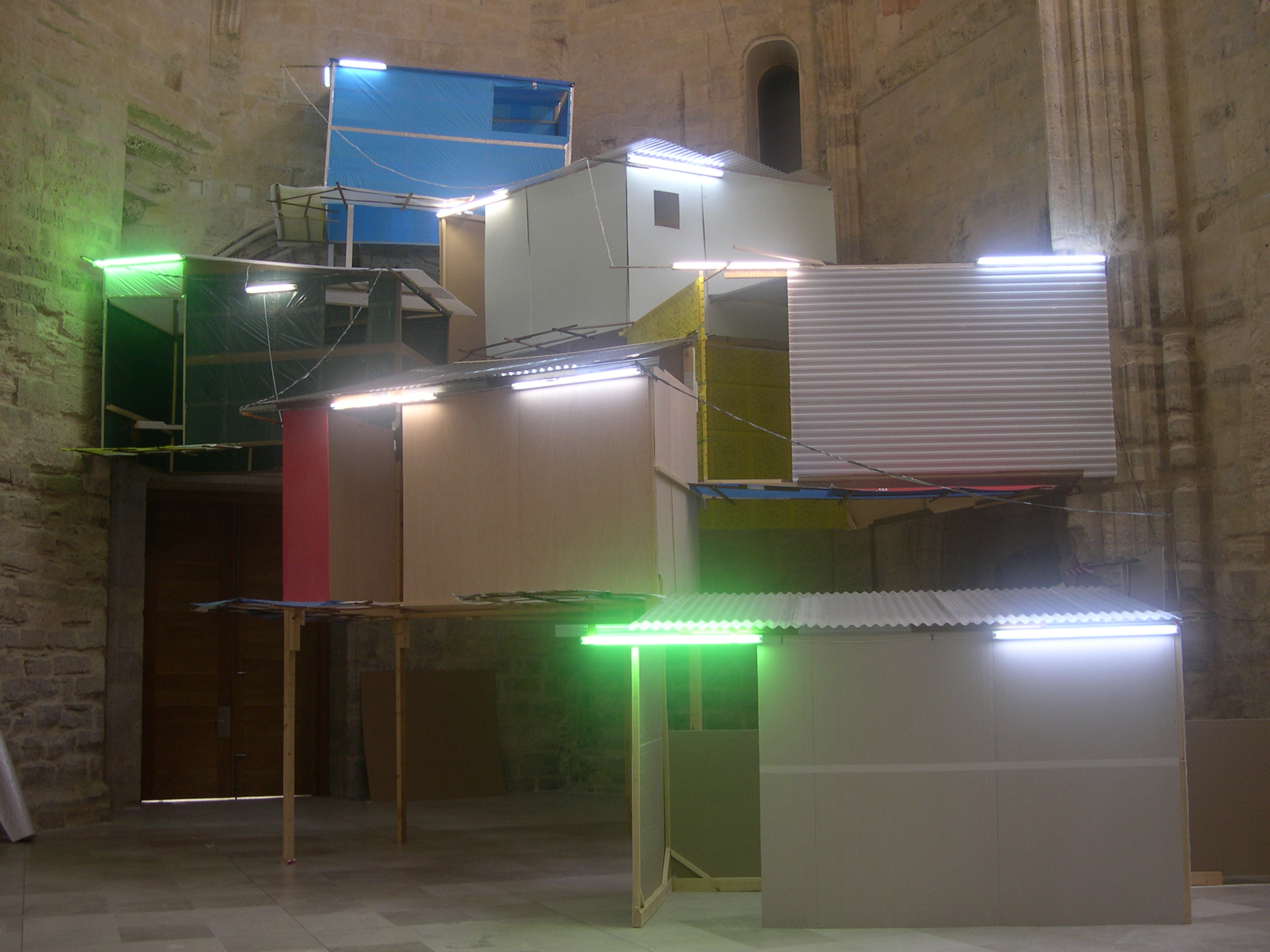 La obra se despliega como una arquitectura contemporánea que juega a confrontarse con la vieja ruina gótica y con la nueva intervención arquitectónica, pero también con el espacio imaginario del museo. Sin embargo, la presencia espacial de la favela, basada en una paradójica inestabilidad, resulta tan dominante que acaba por invadir el espacio real y el simbólico. La favela tiene el poder de transformar la Capilla y presentar ante nuestros ojos un nuevo paisaje. Es curioso, en algunos paises latinoamericanos la ocupación del territorio es llamada invasión...