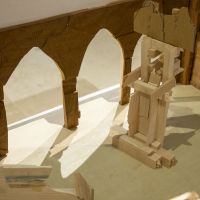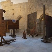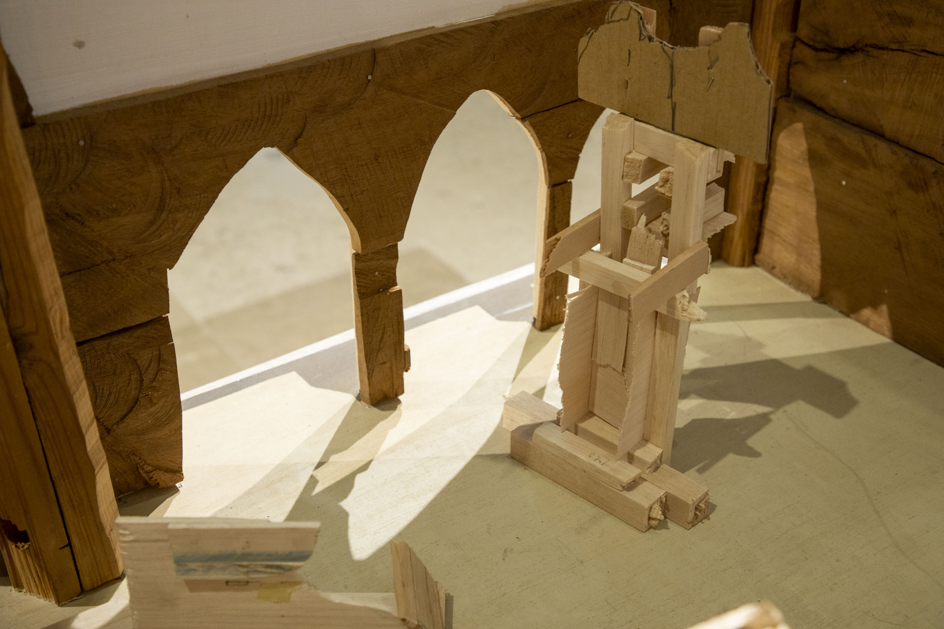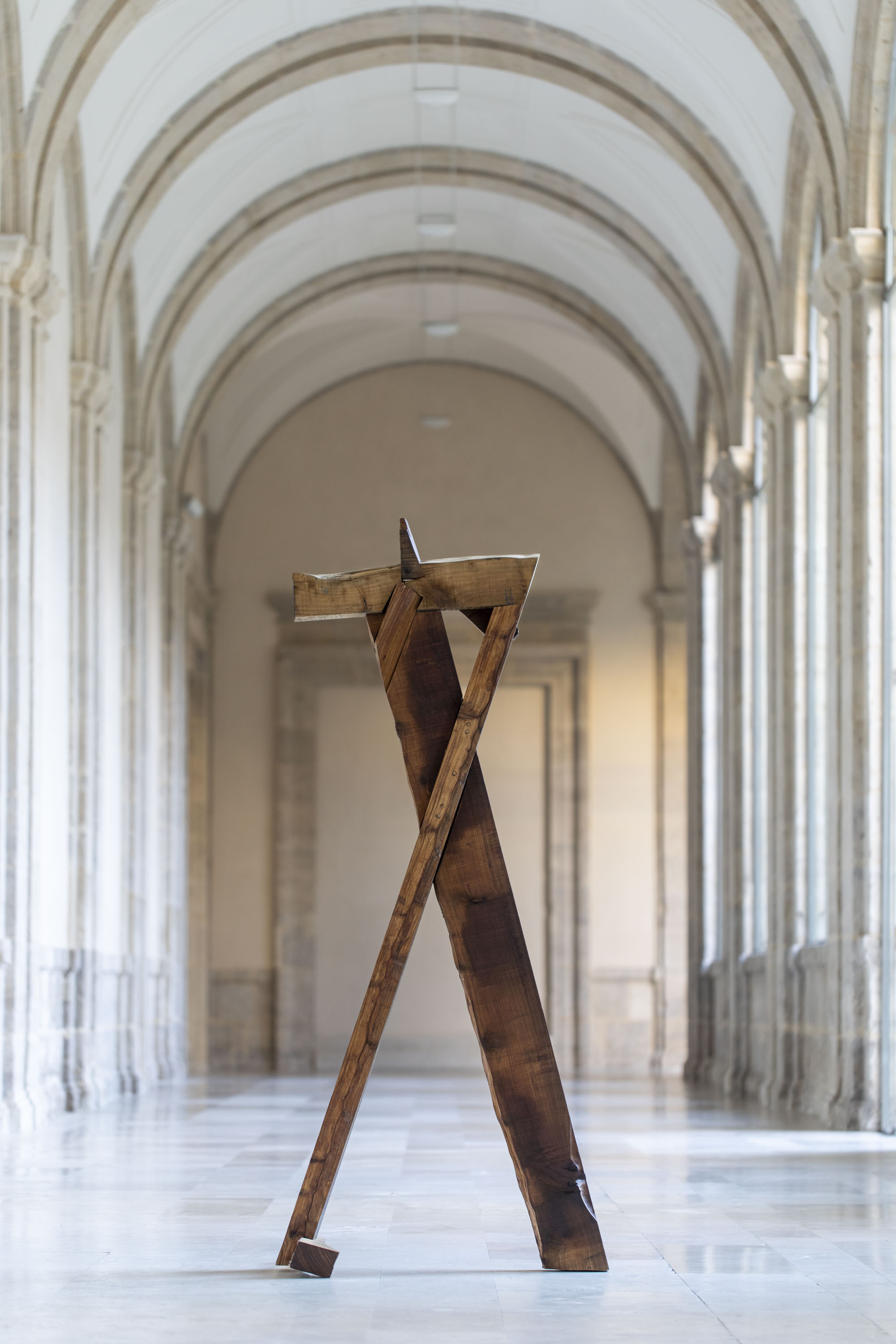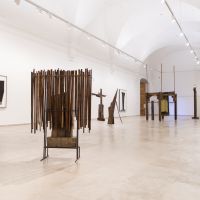 La Capilla de los Condes de Fuensaldaña y la Sala 9 acogen la obra de Jacobo Castellano (Jaén, 1976) en una muestra que ha sido concebida para esta ocasión y, bajo el título “Las calles y los cuerpos”, propone una revisión, desde una mirada y un hacer contemporáneos, de los códigos de la tradición escultórica renacentista y barroca tan arraigada en nuestra ciudad. Llamamos “calles” a los ejes verticales que configuran las fachadas de las iglesias y también de los retablos, mientras que los “cuerpos” son los volúmenes que, superpuestos, configuran sus alzados. Tras sucesivas visitas al Museo Nacional de Escultura para apreciar las traseras del retablo de San Benito el Real, que Berruguete construyó para la Iglesia homónima en el primer tercio del siglo XVI poco después de regresar de su viaje a Italia, Jacobo Castellano comenzó a trabajar en la construcción de una ficción material y espacial desde la que ocupar el emblemático espacio de nuestra Capilla. En paralelo, y fuertemente ligada a dicha ficción, el artista observa el sentido semántico de las “calles” y los "cuerpos” para explorar el modo en que mostramos, pública y colectivamente, nuestro fervor en el marco de las celebraciones tradicionales, un asunto al que Castellano se ha asomado en no pocos momentos de su carrera y con el que contribuye a apuntalar el interés del museo por las diversas manifestaciones de “lo popular”.