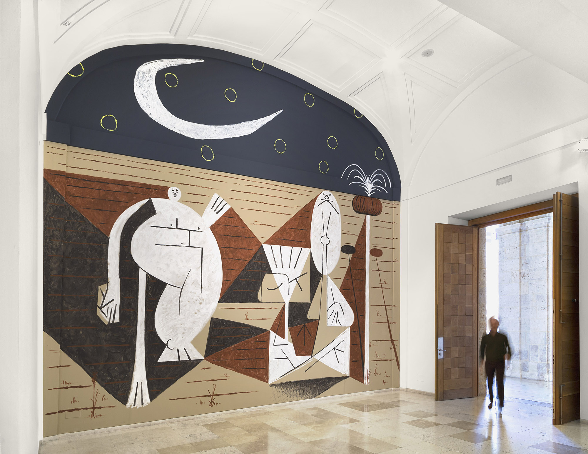 El mural “DANZA LUNAR”es una cita a un cuadro de la colección del Museo Patio Herreriano titulado Bailarines (1932) de Benjamín Palencia.