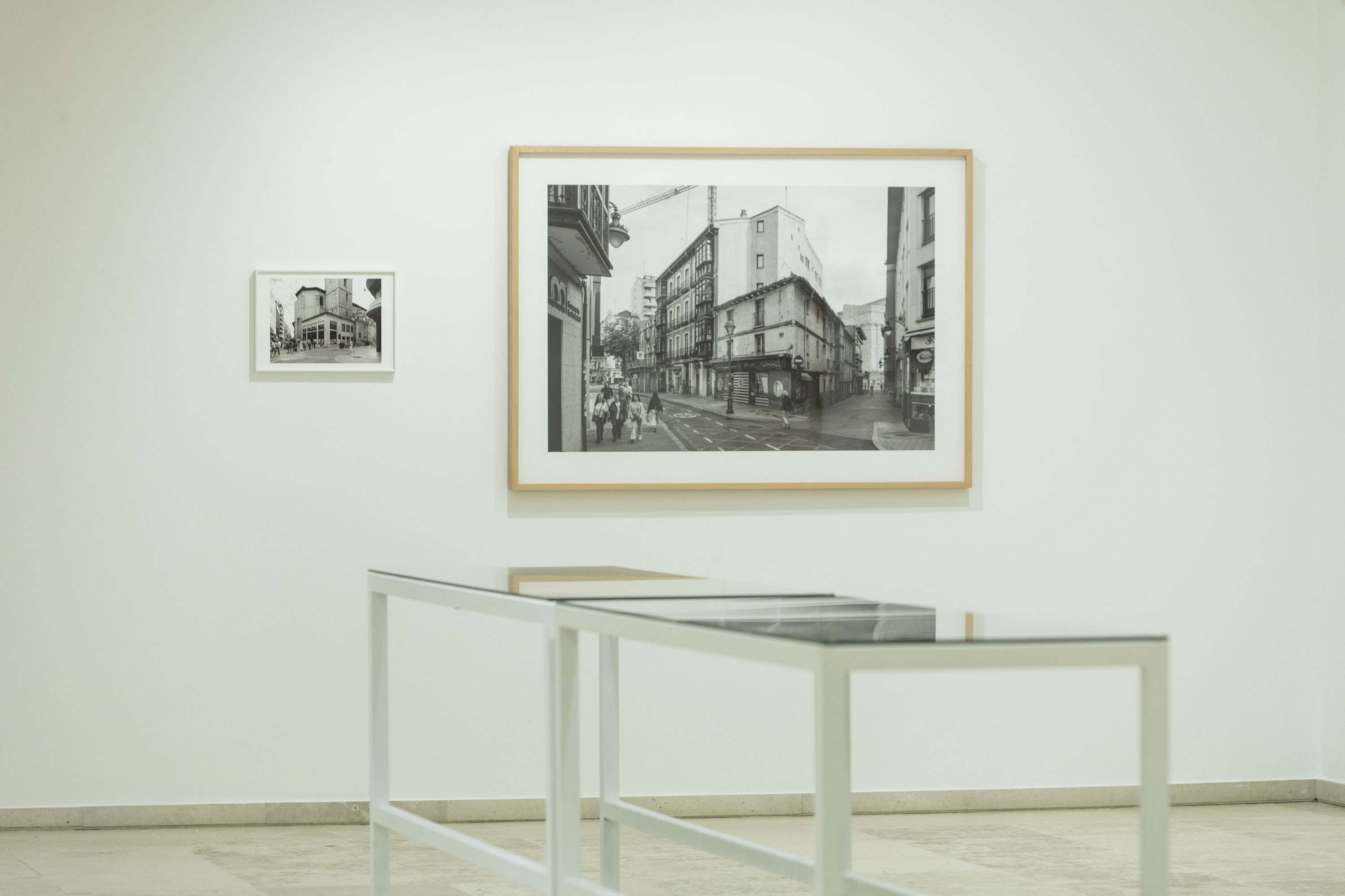 La constatación de que la ciudad es como acabo de resumir ha sucedido por acumulación, a base de recorrerla en dos tipos de desplazamientos perfectamente diferenciados. En el primero, con la cámara, me voy deteniendo para fotografiar lo que me parece interesante, discerniendo entre lo conveniente y lo inadecuado. Aquà conjugo la lógica racional de lo que ya sé –lo genérico– con la sensación de sorpresa que me provoca lo imprevisible, que siempre es concreto. De estos desplazamientos salen unas fotografÃas que son el material en bruto. Para llegar a las definitivas tengo que volver a moverme por la ciudad, pero ahora el tipo de desplazamiento no es fÃsico, recorriendo sus calles, sino de 'lector en casa' –como decÃa Richard Ford en su guÃa de España (Londres 1844)–, trabajando con las fotografÃas que he hecho en la calle. El proceso tiene su ritmo, y tanto en la labor de la primera selección, cámara en mano, como en la segunda, ante las copias de trabajo en papel, hay abundantes tiempos muertos en los que aparentemente nada se hace ni nada ocurre. Pero al final se acaba teniendo una selección, que deberá adaptarse a las caracterÃsticas particulares del espacio –pared, libro, vitrina, monitor– donde se vayan a publicar.