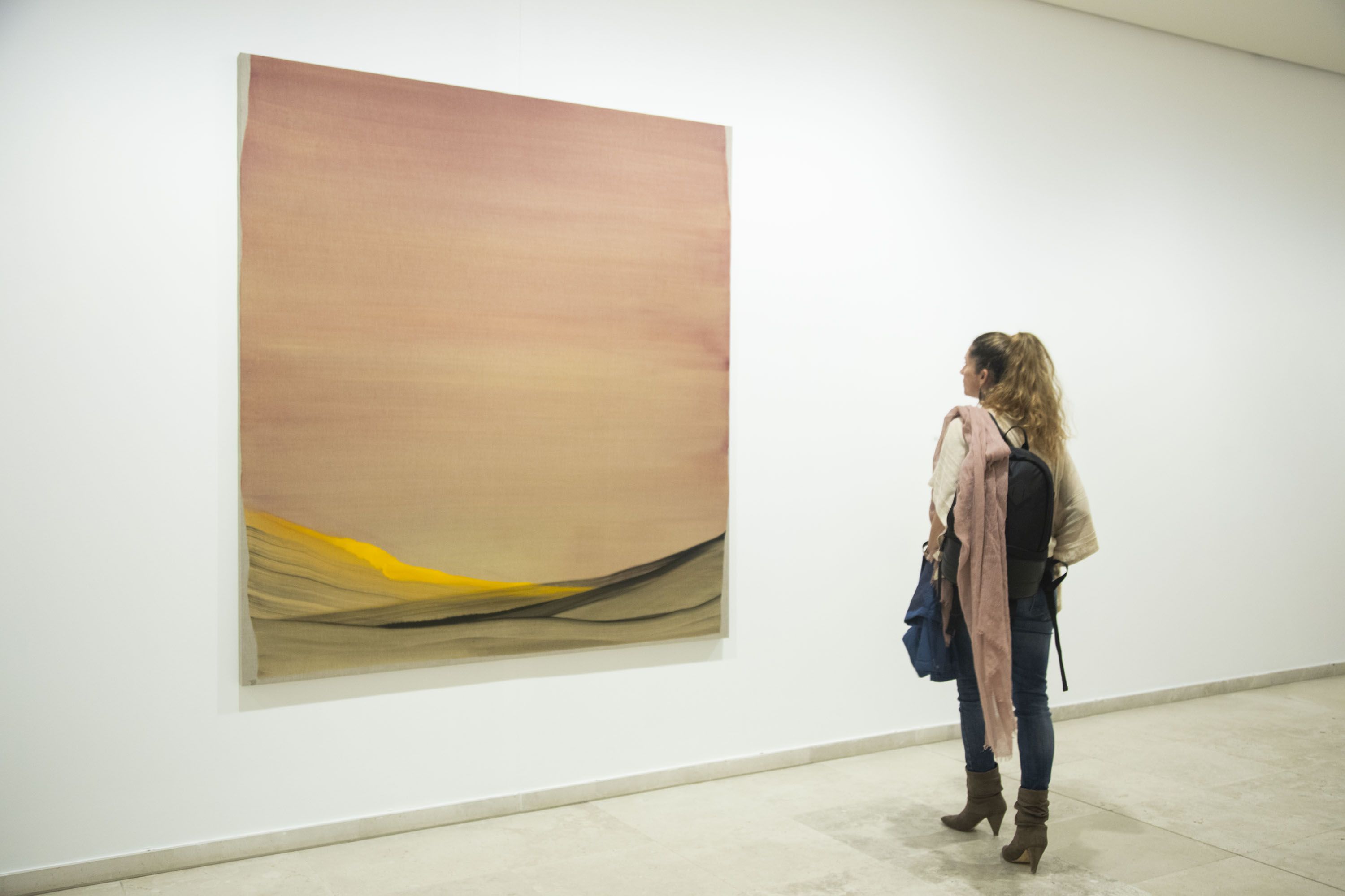 We need to zoom out, from the specific and out onto the general, in order to understand that a limit is not such thing without a field, a reality or a magnitude on either side of it. In the field of landscape, horizon is the element that most usually epitomises the limit. It separates the earth and the sky, the tangible and the ethereal. Horizons structures the work of the two artists on show here, but the limit it conveys is perceived from diffferent perspectives. For photographer José Guerrero (Granada, 1979) horizon is firm and precise, whereas for painter Nico Munuera (Lorca, Murcia, 1974) it is a capricious and ductile line, should we allow ourselves to perceive it as a line or even call it “horizon”. From their respective mediums, both artists approach the construction of landscape and their posible limits while simultaneusly examining the possibility of trascending their edge and step out onto the exhibition space. A reiteration of borders and frontiers thus appear in both rooms, be them within each individual work and in the wider context of the exhibition space.