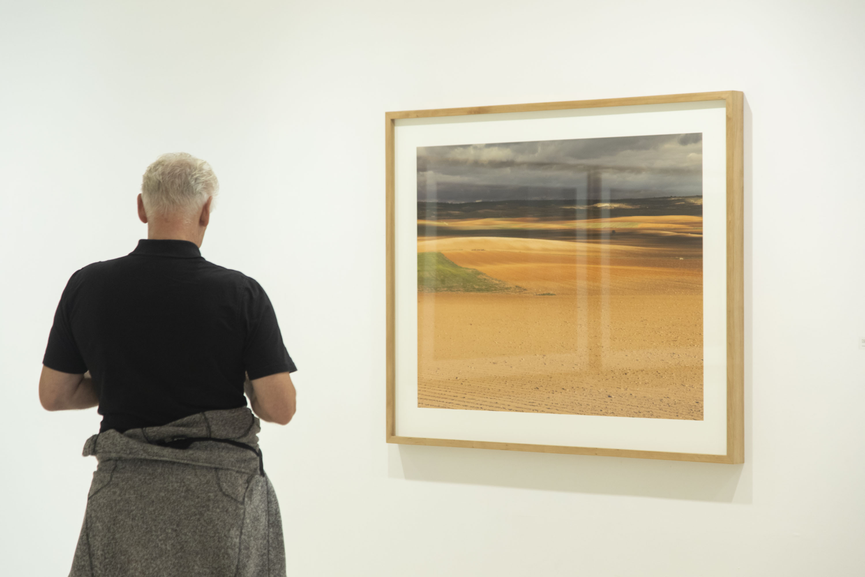 Installed in Room 2, José Guerrero’s photographs belong to two series in which landscape is addressed to in straightforward fashion, La Mancha and Sierra Nevada. In these works, Guerrero presents his will to register or witness the reality of a place while pointing at his interest in the construction of form, with strong visual axis that determine the framing of his subjects. In his landscapes of La Mancha, we hear echoes of Díaz Caneja’s teluric concerns and the deep impression of being in the landscape (might his painting be landscape itself?). The luminous texture of these photographs match the dense obscurity of the mountains of the Sierra Nevada series, the shots taken in the melting season, a moment of transition that contrasts with the impecable quality of the image.