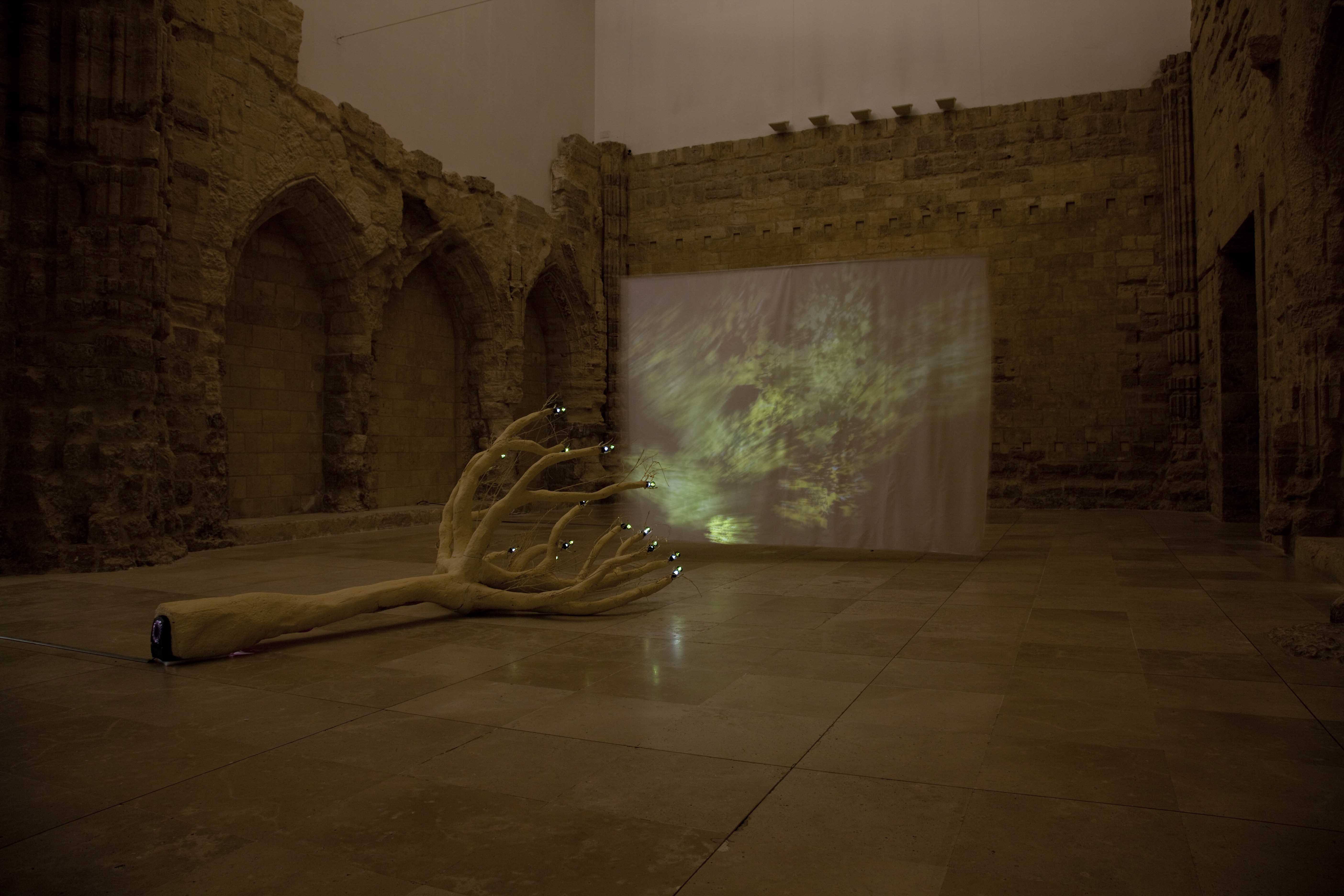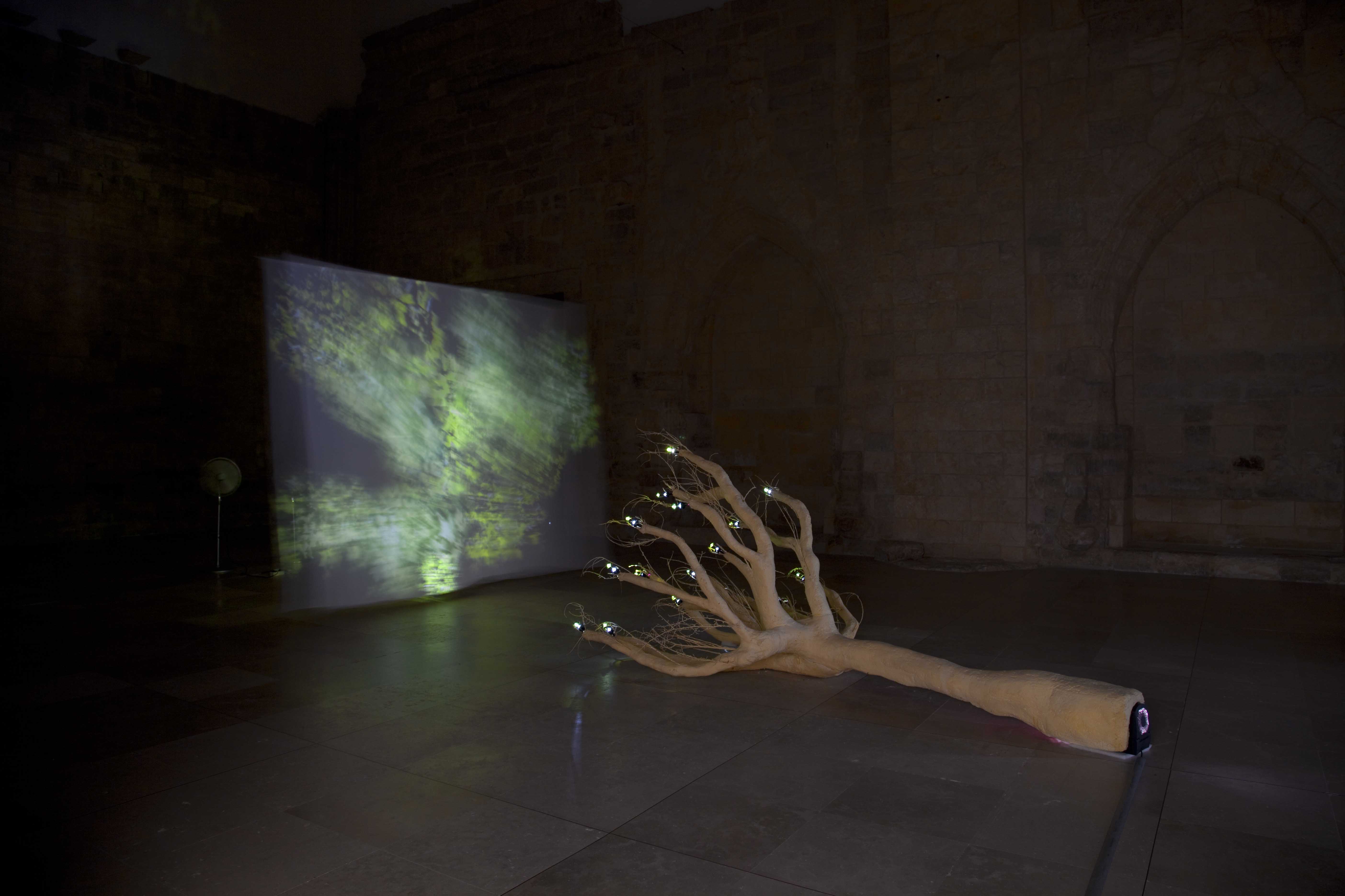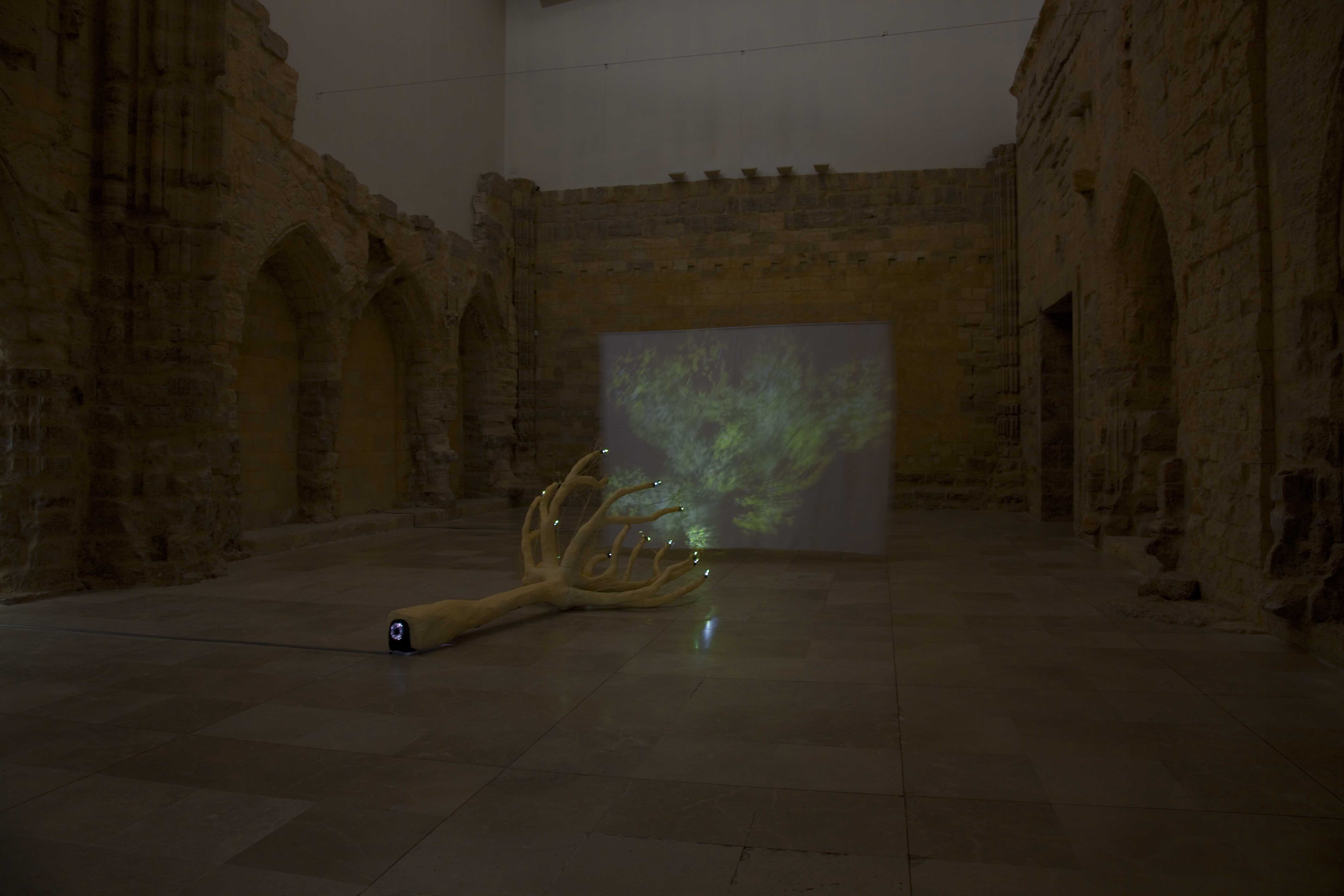 Al entrar al espacio en penumbra, el público se encuentra con un árbol caído de 375