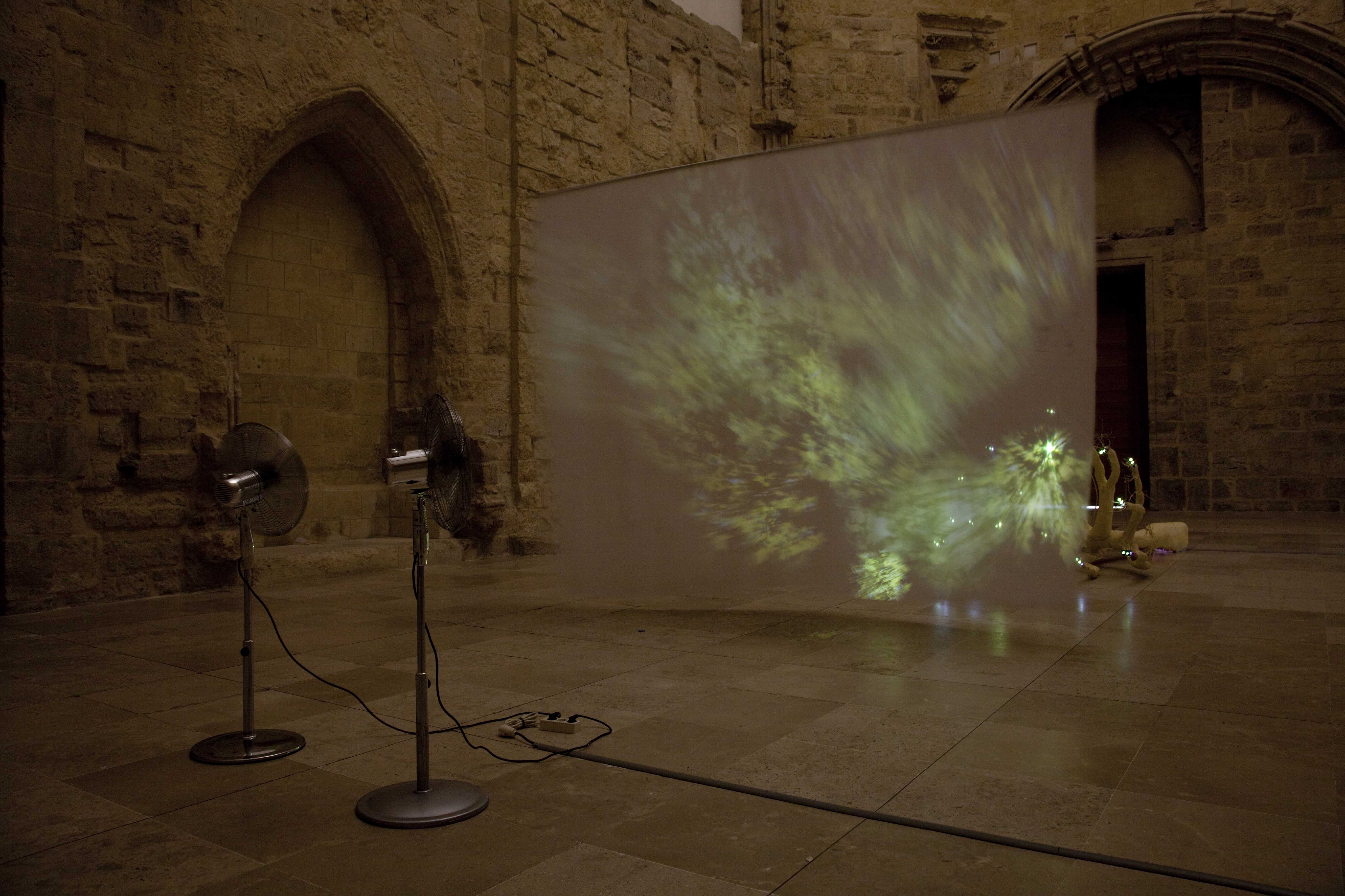 se proyectan sobre una pantalla que se mueve con las corrientes de aire producidas por