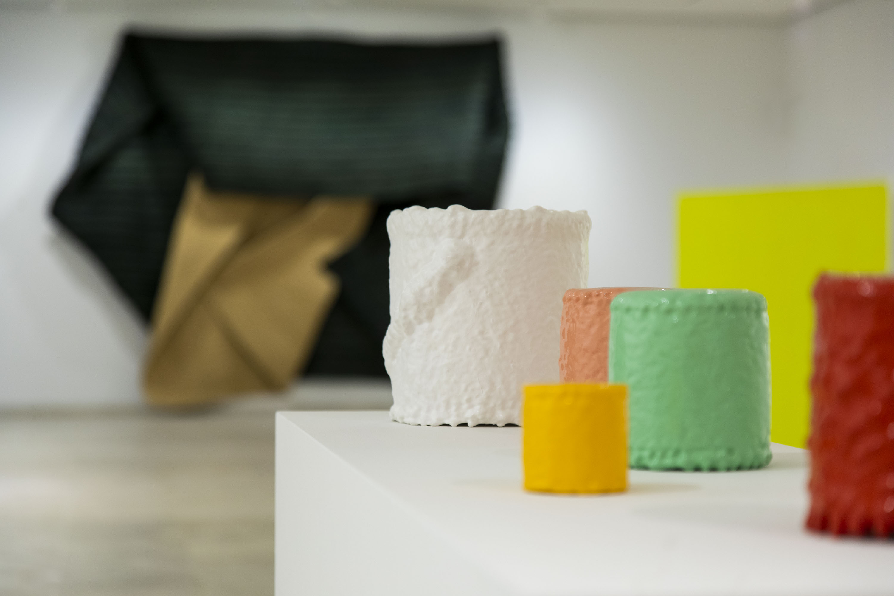 David Barro’s words, although the artists gathered in this room did not all first become visible in the twenty-first century, fit hand in glove the colourful ideas that each of its members presents, taken directly from their studio materials, intimately linked to their daily practice, to sheer experience of artmaking.