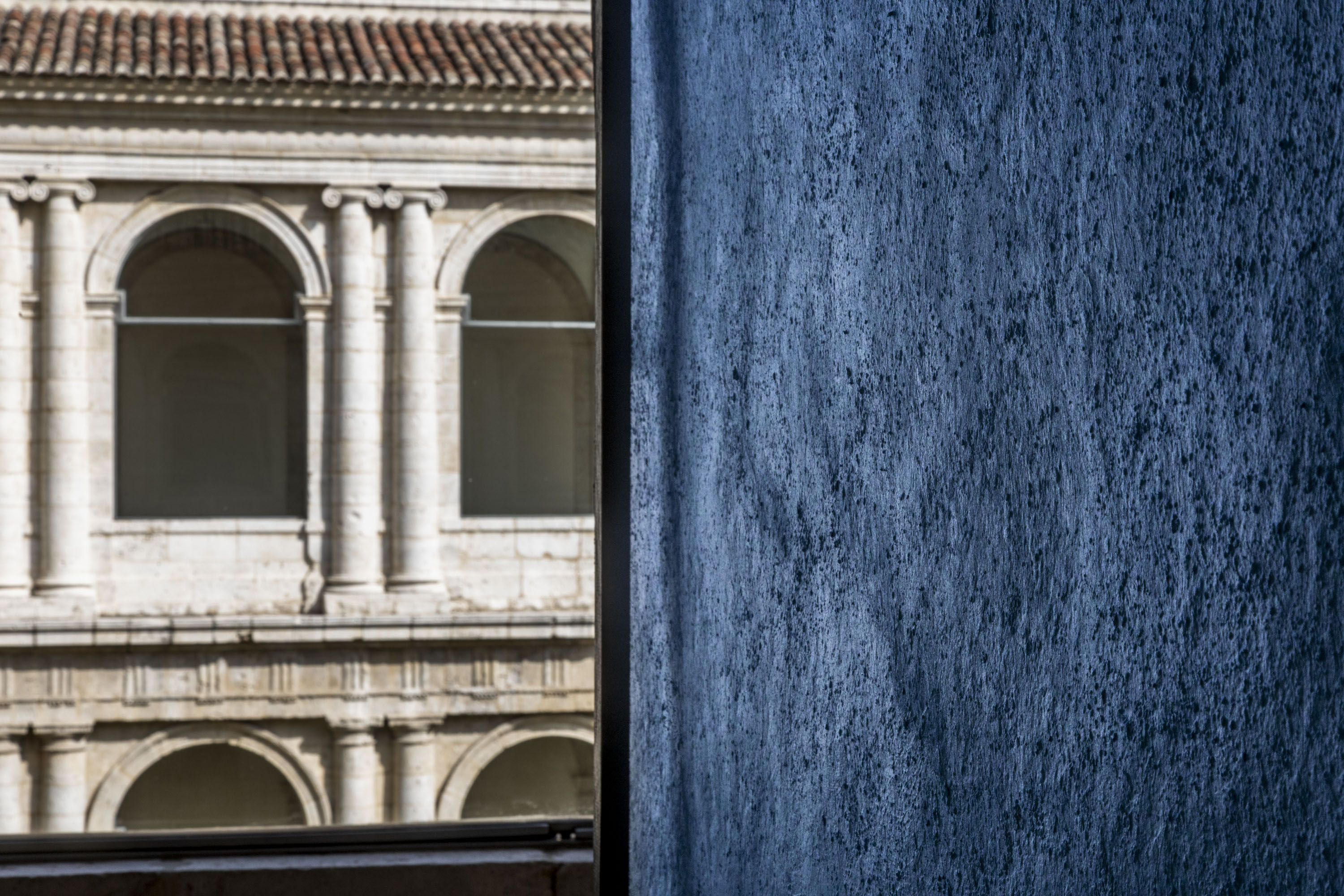 The work on the windows of the façade corresponds to previous projects of his already carried out in other institutions and private collections. In his own words, “Perhaps what fascinates me about painting on glass is that it is a support that cannot or should not be painted on. [...] Another point in favour is the possibility of intervening on both sides of the material, let’s say that the difference between the face and the back vanishes. We can approach the surface from both sides. I’m talking about a surface seen as a skin that covers a body, in this case glass, which is of different thicknesses and has different nuances”.