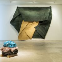 Confluyen, pues, en esta sala, obras de autores hoy clásicos como Mitsuo Miura o Santiago Serrano, quienes desde distintas posiciones y culturas coinciden en explorar la incipiente posibilidad del volumen en la pintura, con otros creadores, más jóvenes, que indagan más allá del concepto de lo pictórico y acuden a materiales que llevan la pintura a otra dimensión.