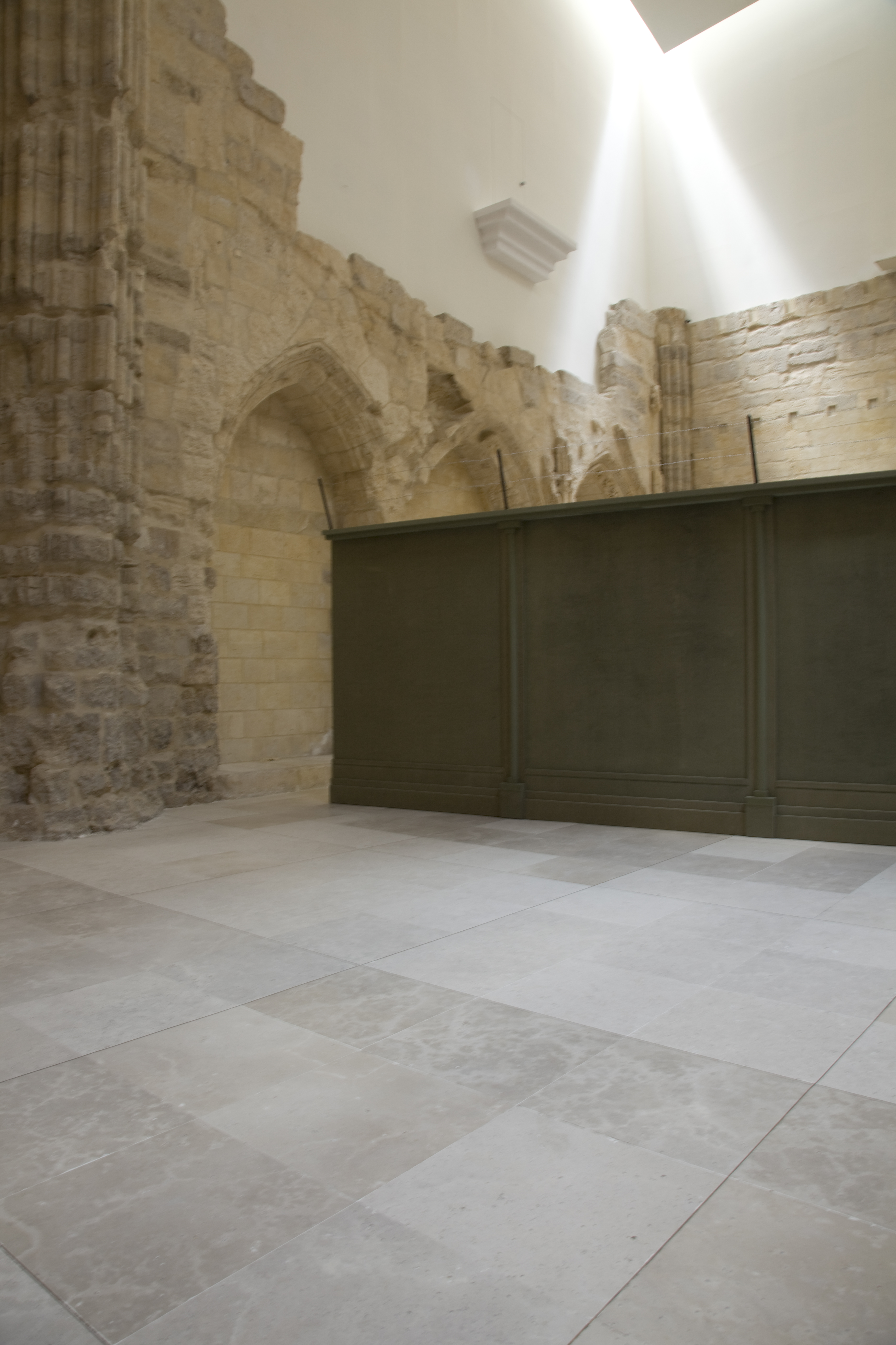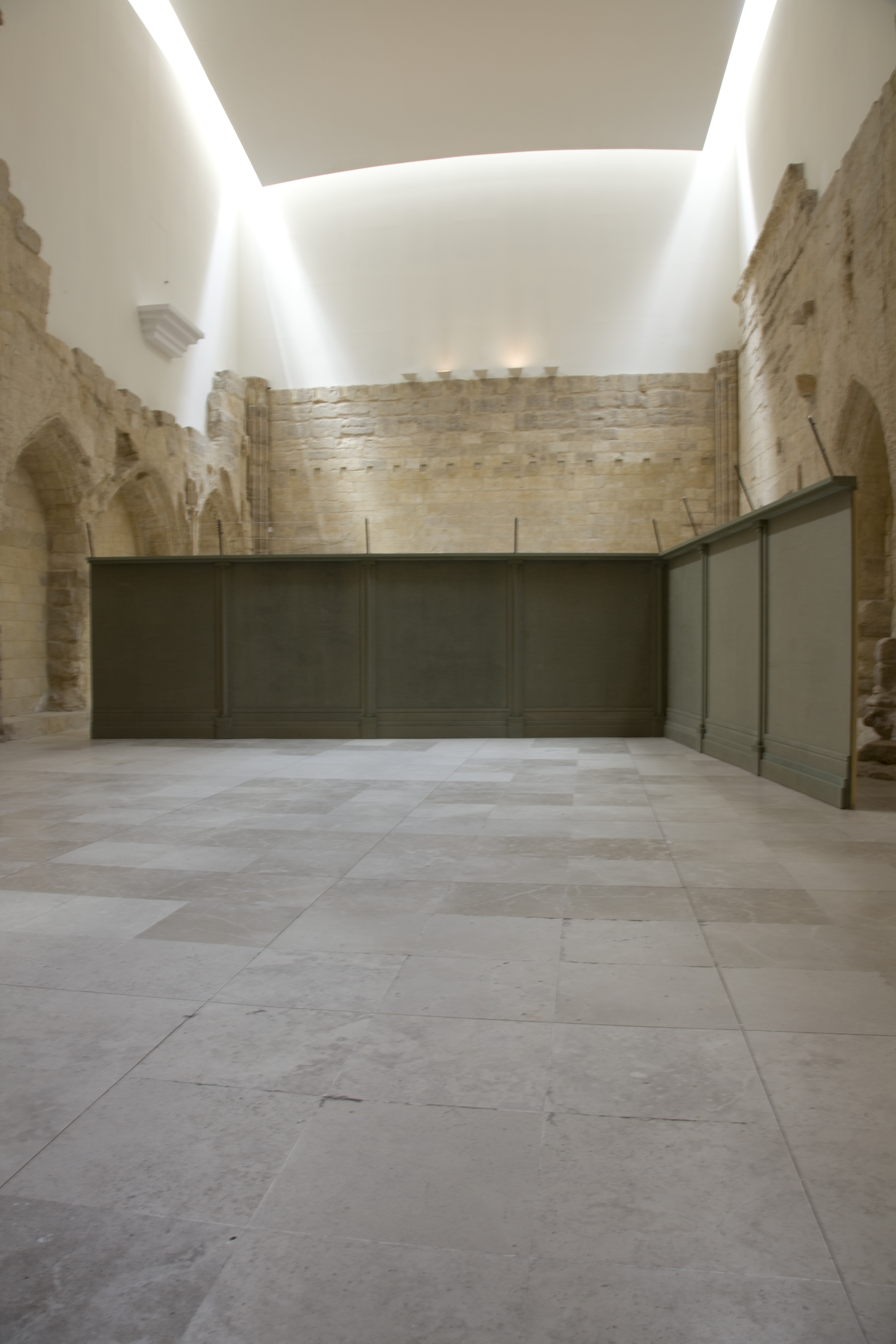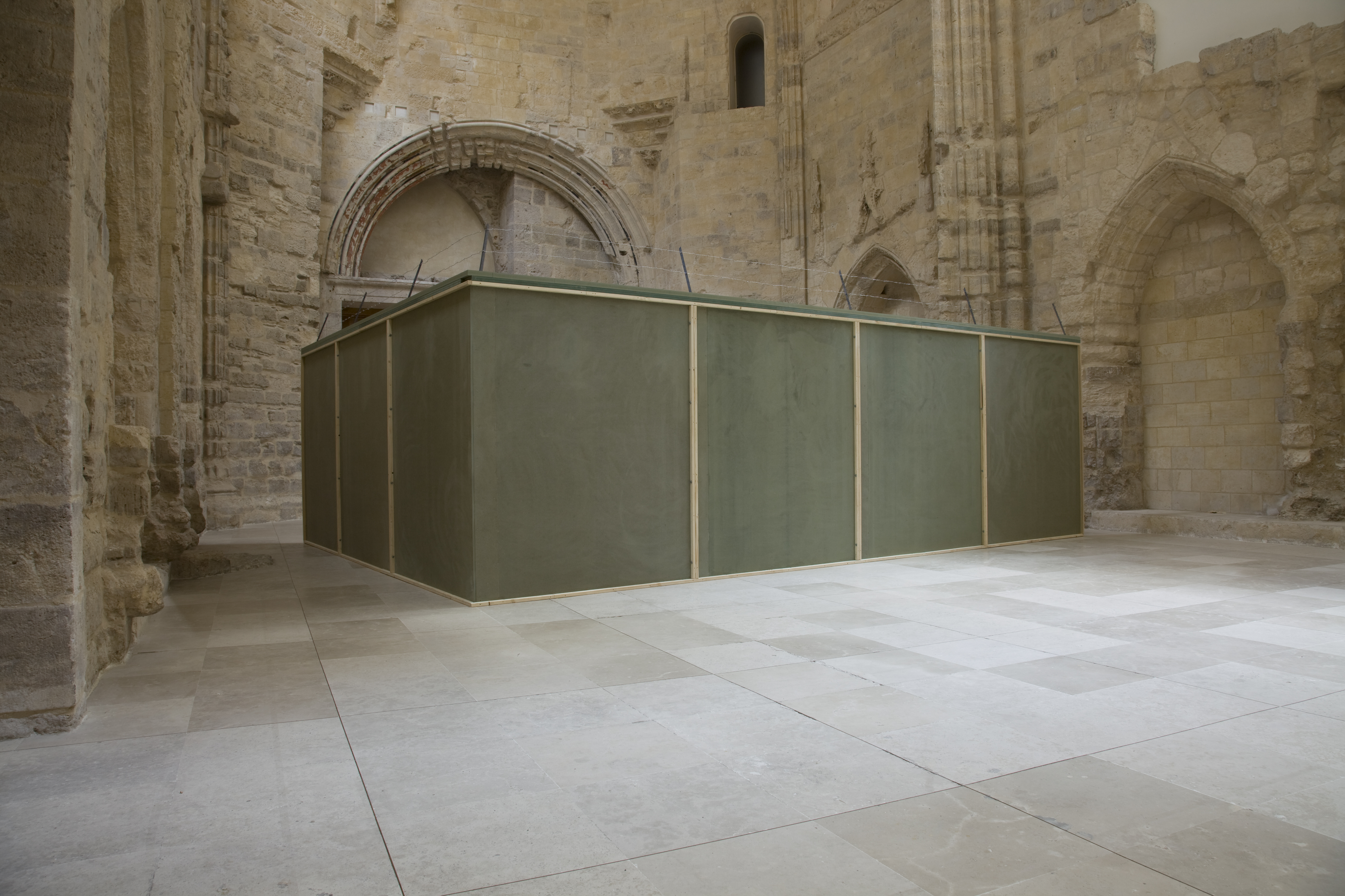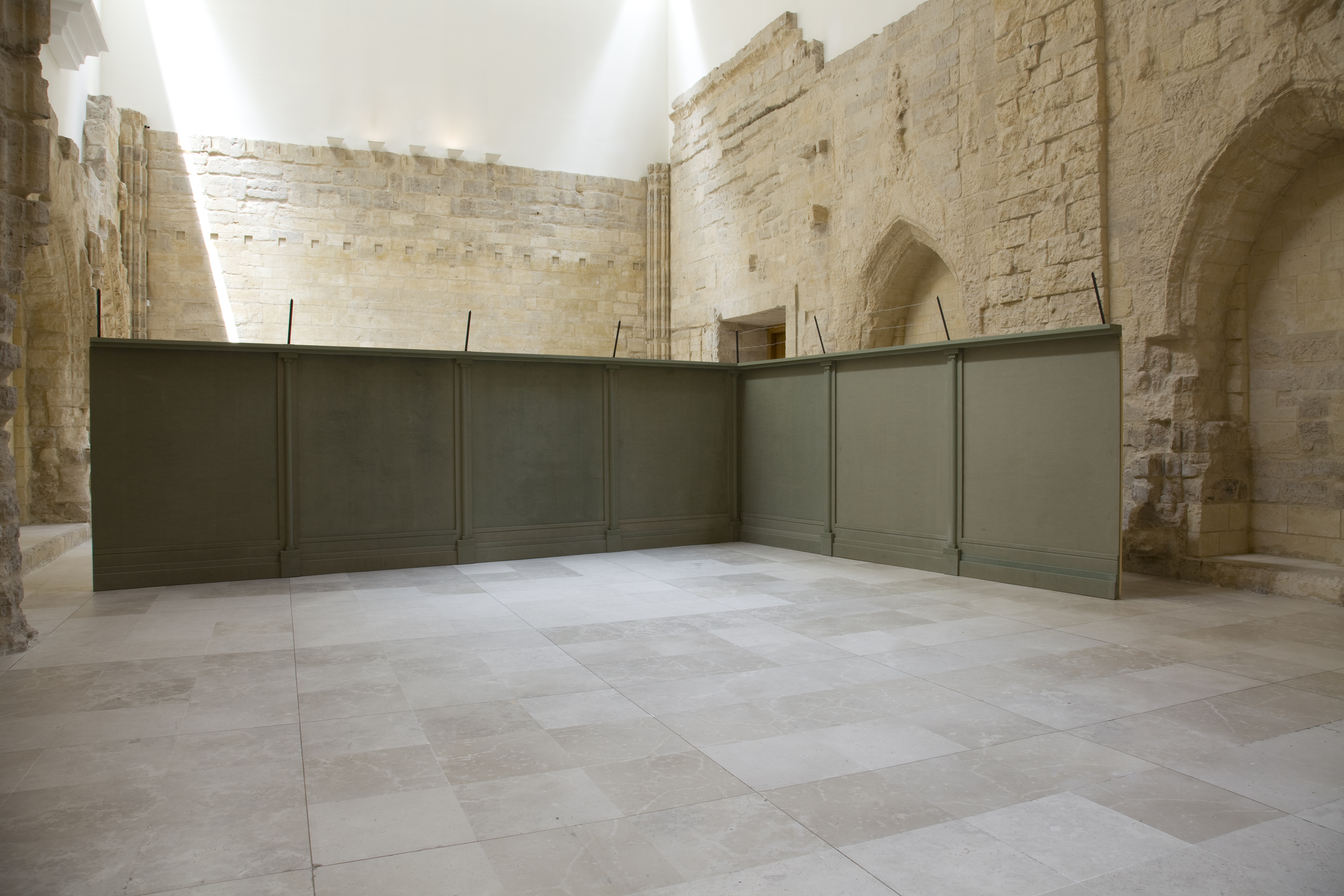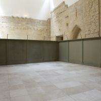 La obra Curtain 3, el muro, es como el crimen, pero tanto una obra como la otra tienen autonomÃa propia y a su vez generan un diálogo. Curtain 3 es la descontextualización de la barrera al dotarla de cualidades que la acercan al absurdo, por el hecho de ornamentar lo terrible. Por dotar de una belleza a algo que por si mismo provoca fealdad y fragmentación y se torna ahora en objeto limitado. Con esta instalación la sala queda dividida en dos partes, como ocurre en cualquier circunstancia en la que nos encontramos una valla o un muro. Vallas como muros falsos que acotan cualquier territorio y que siempre pueden ser rebasados por muy altos que sean, por el tiempo o por su razón de ser.Â