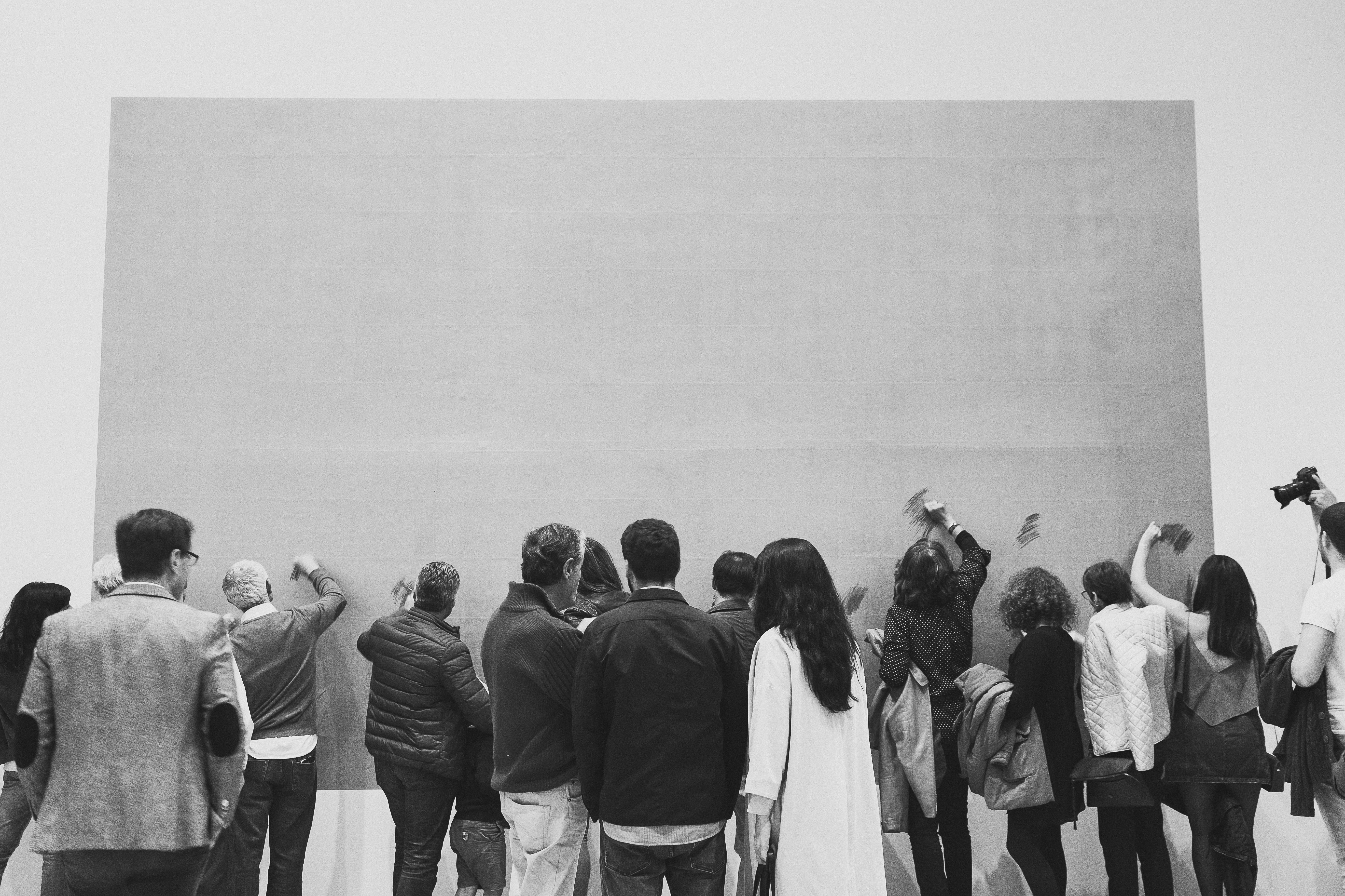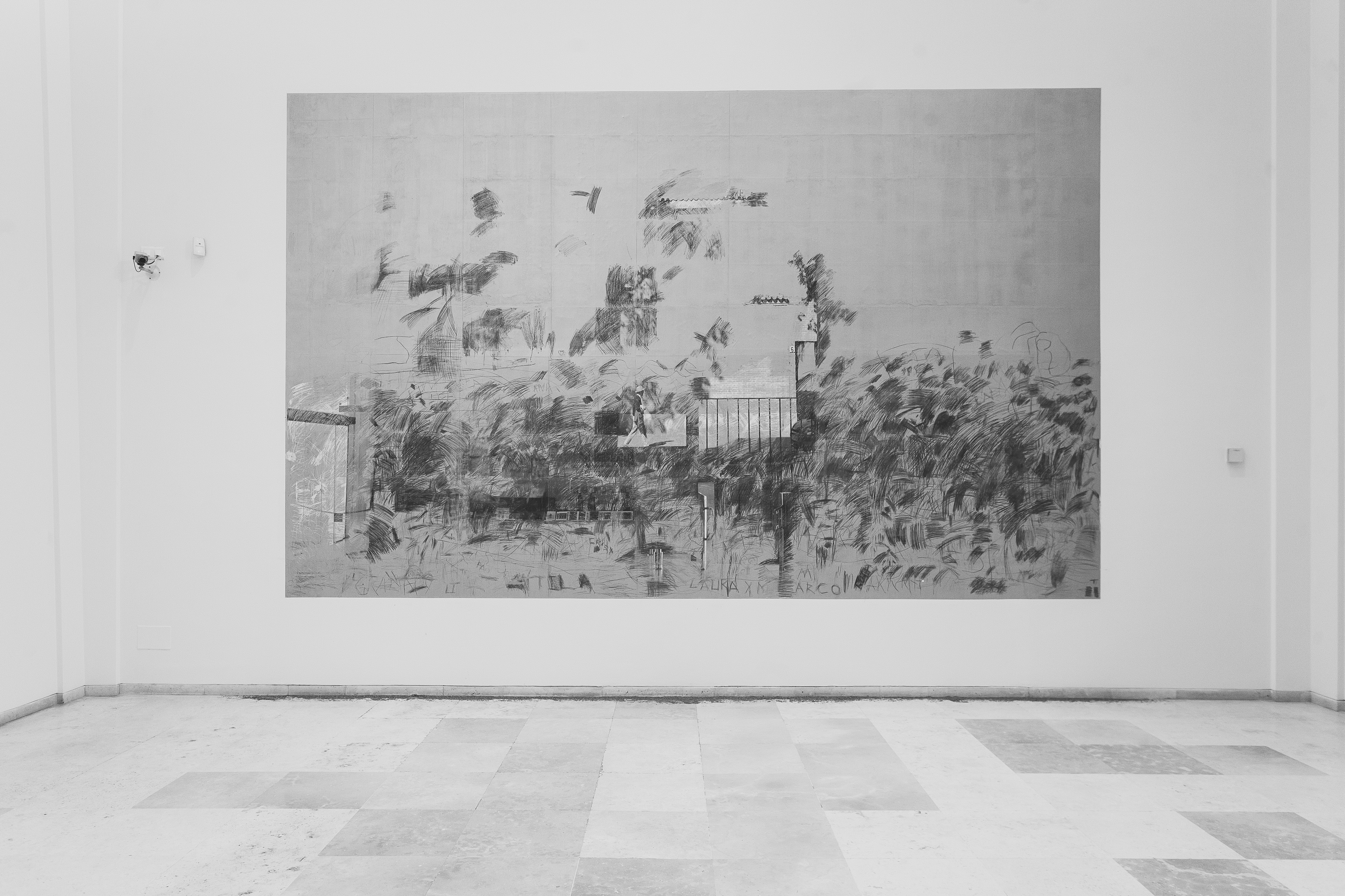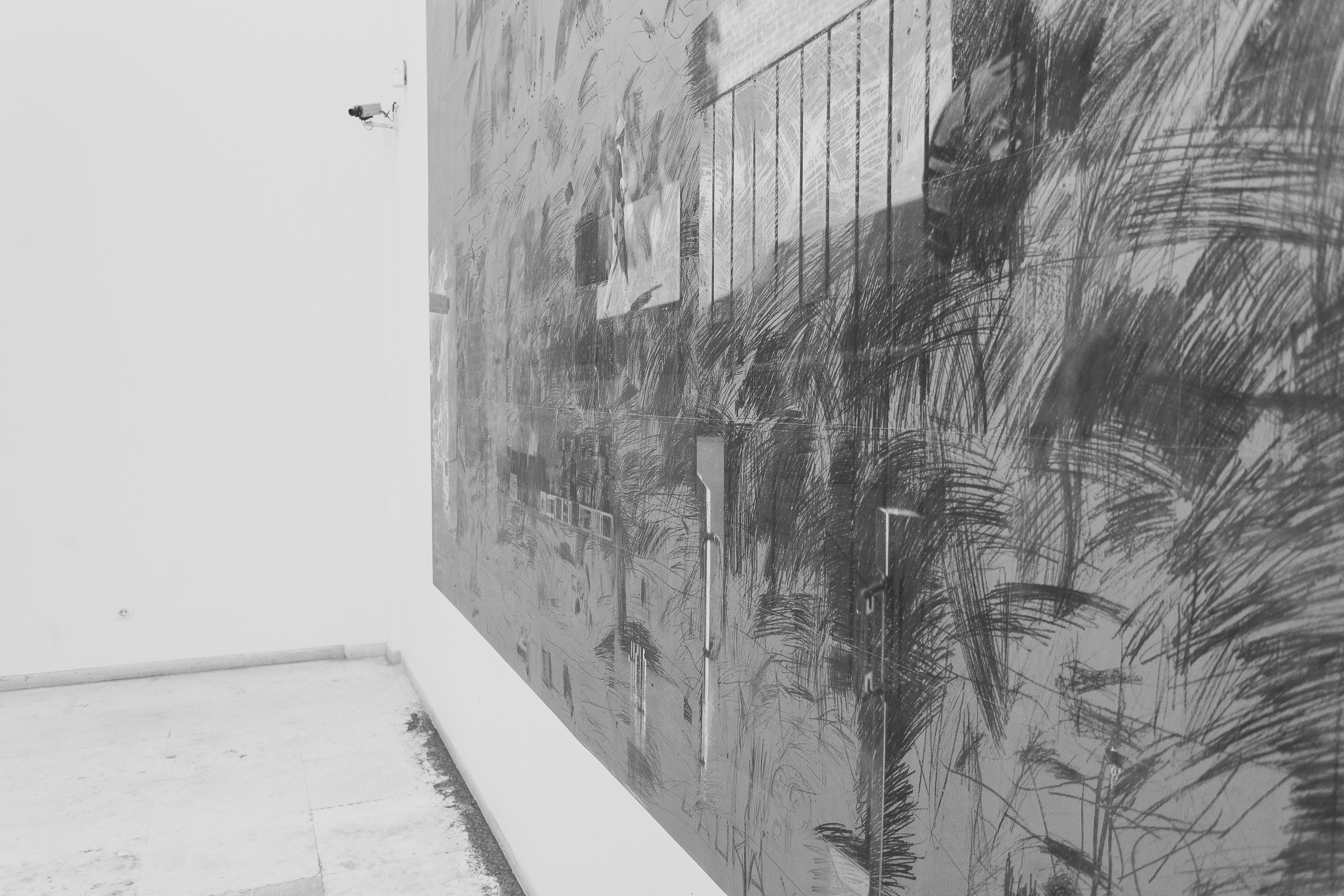 “Scratch the surface” representa una intervención sobre la arquitectura simulando su modificación utilizando una nueva visión a partir de lo que hay establecido en ese momento. El resultado final que ha conseguido el artista es una intervención mural para el espacio propuesto por el museo, que transforma la pared en un gigante cartón de rasca y gana, donde los espectadores pueden interactuar con la obra, a modo de happening. De esta forma el público podrá ir rascando, como cuando rascan sus cartones buscando un premio, para descubrir en él una fotografía que refleja lo que de verdad se vería en ese punto de vista si descompusiéramos la pared, tomando la arquitectura como algo establecido e impuesto por la sociedad, en la que el autor interviene simulando su modificación.