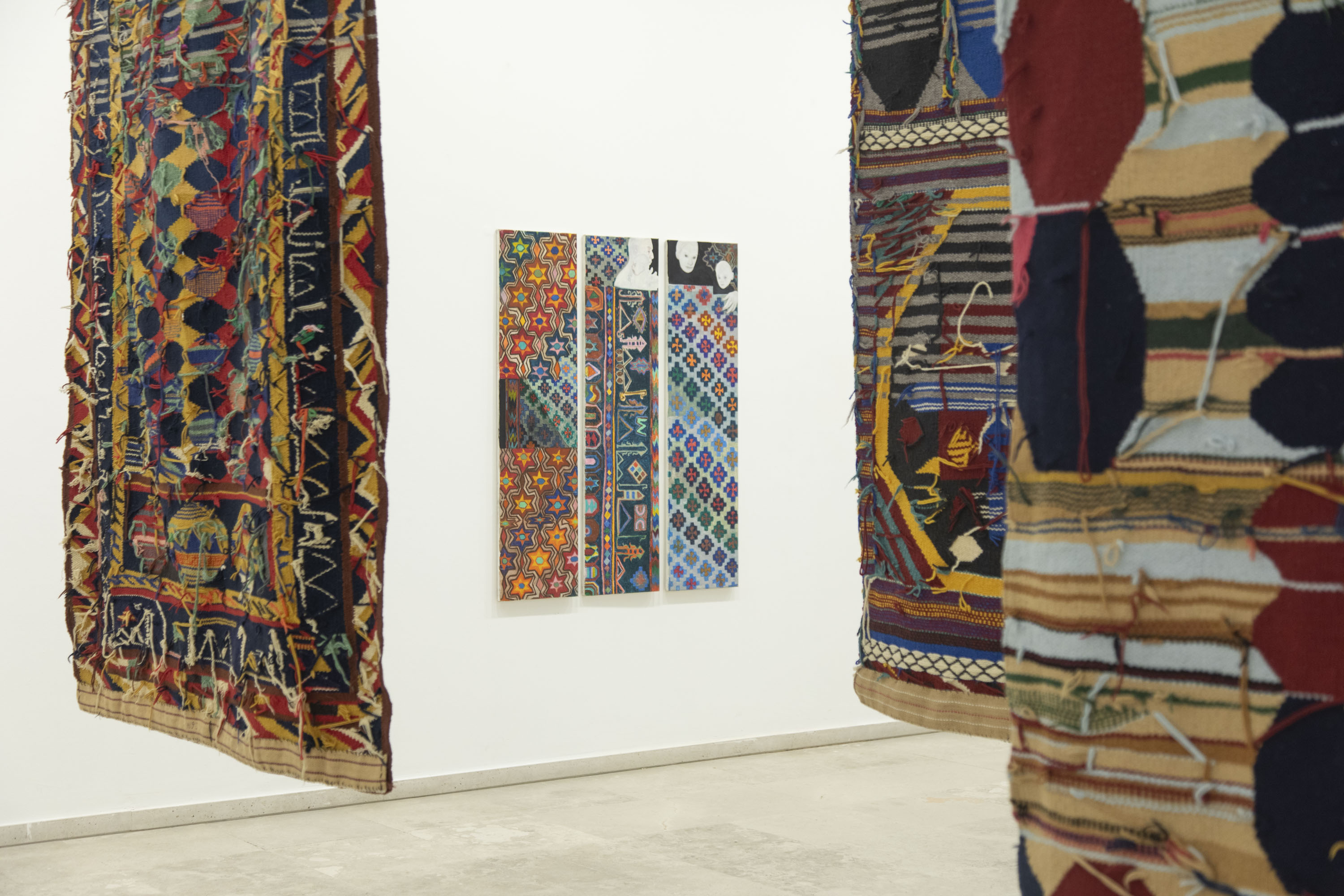 El sueño de la cólcedra es el título de este proyecto. Toma su nombre de un conjunto homónimo de trabajos que la artista ha producido ex profeso para esta exposición y que alude a la cólcedra o colcha con la que Alfonso VIII fue enterrado en el Monasterio de Santa María La Real de las Huelgas (Burgos). Arranca así una lectura de diferentes acontecimientos históricos a través de fuentes diversas, como las cuatro tablas al temple de los Plañideros halladas en la tumba del caballero Sancho Sánchez Carrillo, en la ermita de San Andrés de Mahamud (Burgos); las telas bordadas sobre lino blanco atribuidas a María de Padilla que fueron halladas en el monasterio de Santa Clara de Astudillo (Palencia) o el citado perteneciente a Las Huelgas, de donde proceden otros también expuestos aquí.