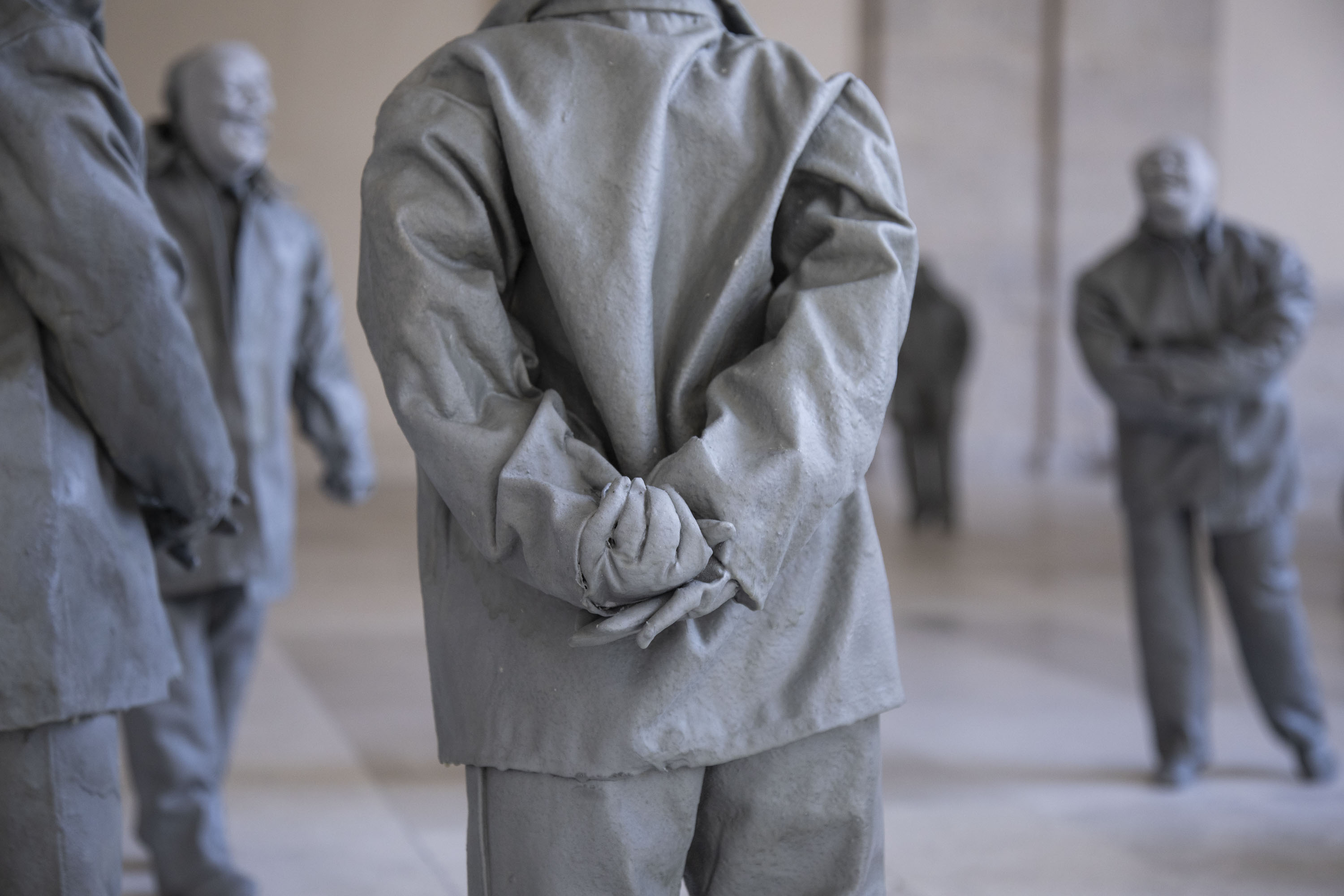 Se cumplen ahora veinte años de la muerte de Juan Muñoz y resuena todavía rotunda la relevancia de su legado. Su obra, sabemos, opera en una honda reflexión en torno al espacio, desde y hacia la mirada, con la representación de la figura humana como centro pero sujeta a un desplazamiento consciente del punto de fuga que heredó de su interés por la tradición barroca, esa que denominó, en una de sus muchas y brillantes afirmaciones, “río de efectos”. Esta tradición, de hecho, se encuentra, también, en uno de los orígenes de este proyecto, en las conversaciones mantenidas con Juan Carlos Arnuncio, arquitecto renovador del Museo Patio Herreriano y gran conocedor de la obra del arquitecto barroco Francesco Borromini, uno de los faros más visibles en la obra de Juan Muñoz.