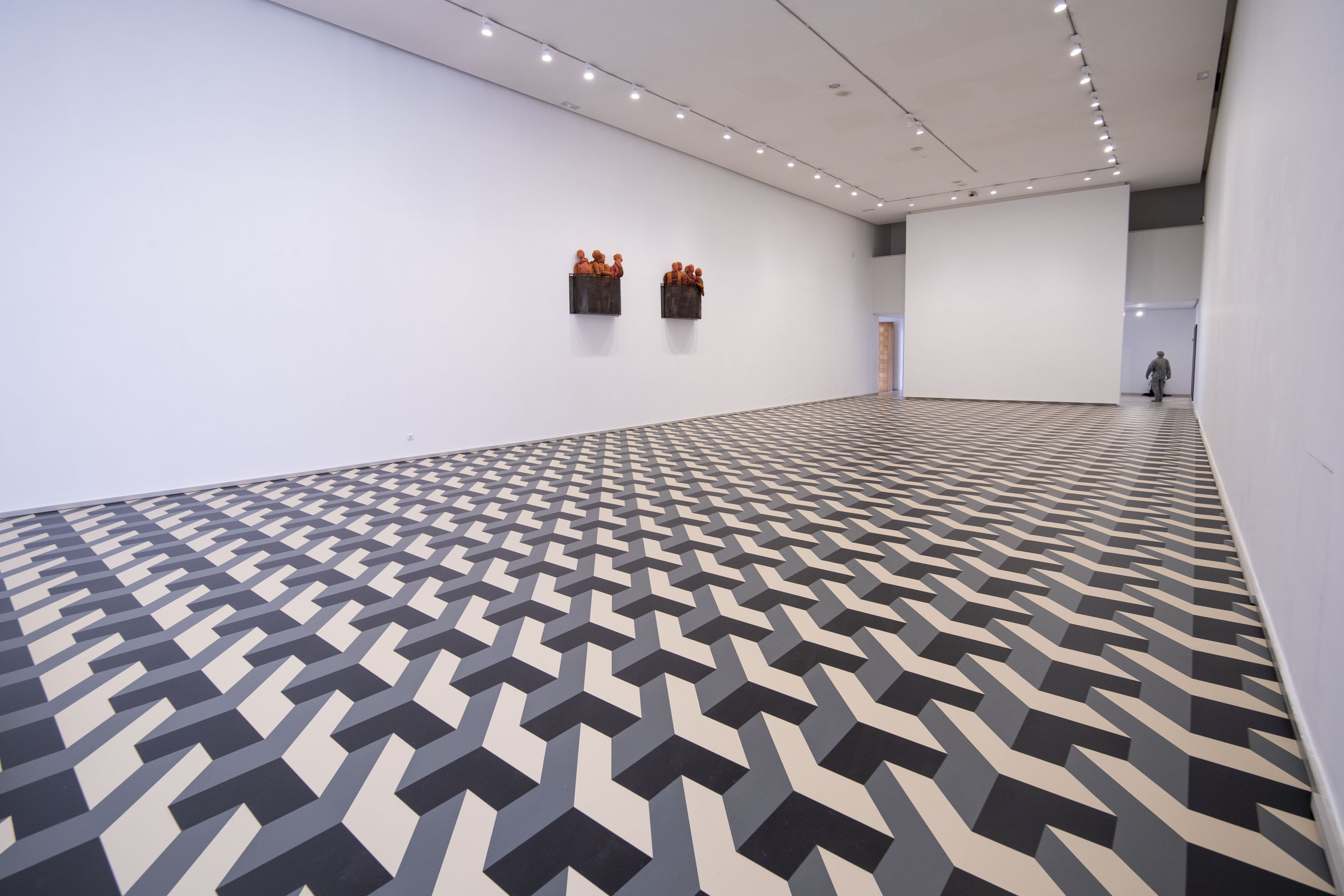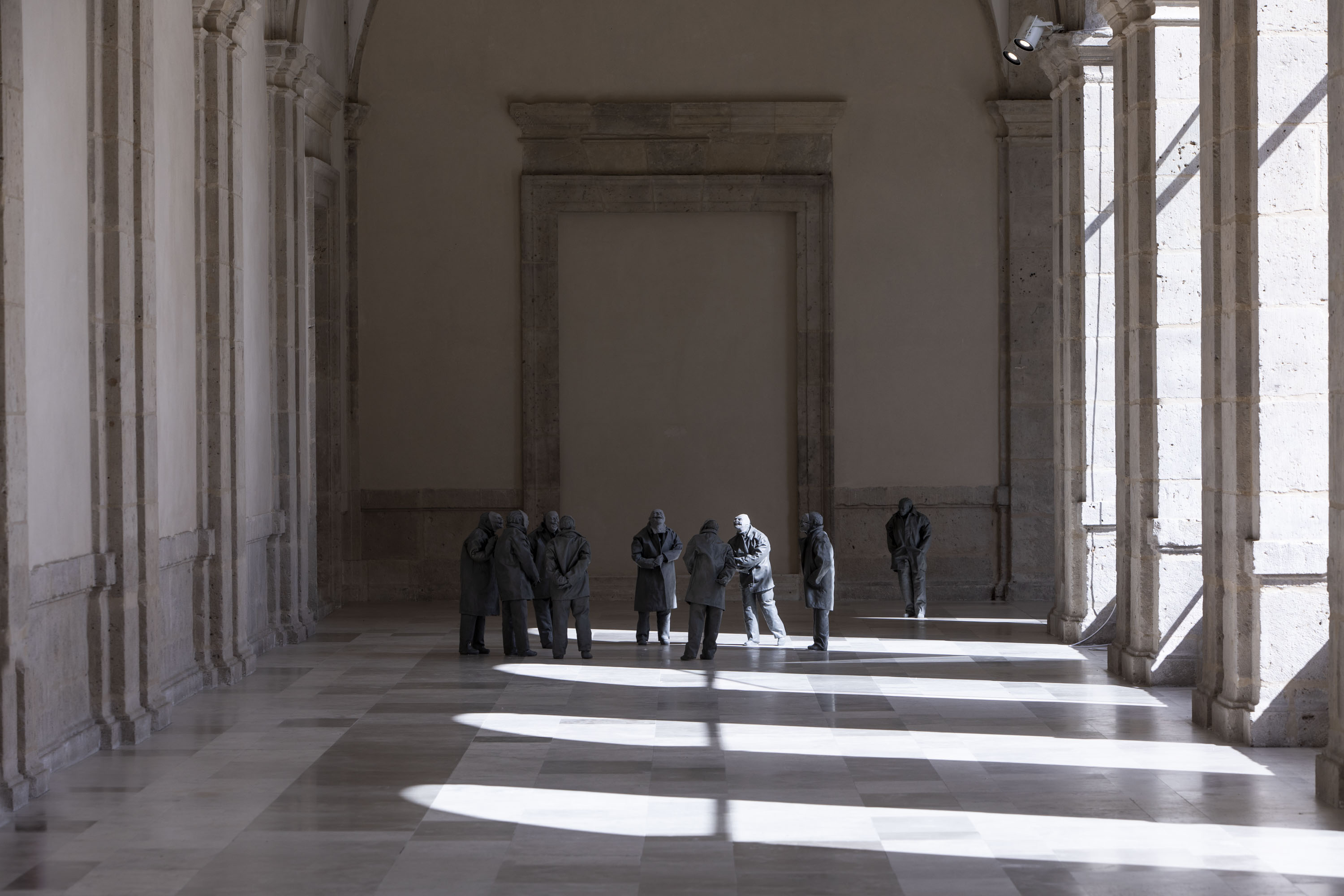 It is now twenty years since the death of Juan Muñoz and the relevance of his legacy is still a resounding force. His work, we know, revolves around a profound reflection on space, from and towards the gaze, with the depiction of the human figure at its centre but subject to a conscious displacement of the vanishing point that he inherited from his interest in the Baroque tradition. In one of his many brilliant statements, he called it the “river of effects”. This tradition, in fact, is also found in one of the origins of this project, in the conversations held with Juan Carlos Arnuncio, the architect who renovated the Patio Herreriano Museum and a great connoisseur of the work of the Baroque architect Francesco Borromini, one of the most visible beacons in the work of Juan Muñoz.