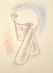 Ninguna de las cabezas incluidas en este grupo es una representación plenamente naturalista, aunque sà lo habÃan sido las cabezas escultóricas ferrantianas desde finales de los años veinte. Aquellas cabezas femeninas en terracota y más tarde -ya a principios de los cuarenta- en piedra tallada eran naturalistas, y sus rasgos faciales poseÃan individualidad, aunque en un solo caso se trataba de retratos de personas concretas. En estos dibujos Ferrant nuevamente hace variaciones formales, y trata la cabeza aisladamente, sin hacerla pertenecer a cuerpo alguno. Realizadas con lápices de colores, como prácticamente todos los dibujos del productivo año de 1955 al que pertenecen, conservan algunos elementos comunes, como ser un bloque ovoide y definirse mediante nariz y uno o dos ojos. Pero Ferrant, partiendo de estas dos premisas y aplicando en sus cabezas su conocimiento de las artes primitivas americana, africana y oceánica, reduce unas cabezas a planos marcados a manera de máscaras, ahueca el bloque desde arriba o frontalmente, esboza una especie de facetado cubista o desarrolla la cabeza a partir de módulos curvos cuyo giro describe el volumen.