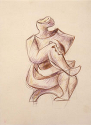 La inspiración figurativa de la obra de Ferrant fue una constante más o menos subyacente hasta los últimos años de su vida. Dentro de la figuración, son las formas femeninas las que más pueblan sus dibujos. En las abundantes hojas dedicadas a este tema puede comprobarse el recorrido de Ferrant por las diversas tendencias de la representación artÃstica moderna y su aportación personal, que confiere a sus dibujos un carácter plenamente reconocible. Aunque en este grupo se incluyen doce fechados en 1955, la figura femenina está siempre presente desde los dibujos más antiguos. A través de ellos puede comprobarse cómo Ferrant indaga y resuelve distintas maneras de resolver figuras empleadas por Picasso, Archipenko, el cubismo, Giacometti, Brancusi, el clasicismo e incluso la propia naturaleza. Dentro de una progresiva tendencia a la estilización a la que ya hemos aludido ─ lo que no impide que en fechas tardÃas siga haciendo algunos dibujos muy naturalistas─ Ferrant tiende en muchos casos a ese concepto de la figura partiendo de fragmentos que logran combinarse para constituirla armónicamente. En este grupo sus figuras son únicas, y se sitúan en el centro de la hoja de papel. Erguidas, tumbadas, sentadas o vueltas de espaldas, suelen tener un rasgo recurrente: en el dibujo se enfatiza la parte inferior del cuerpo, aludiendo sus vientres y caderas amplios al papel de la fertilidad. El artista presta especial atención a la solidez de las piernas, que en muchos casos se engrosan para reforzar la función de sustentación que tendrÃan de ser pasadas a escultura.