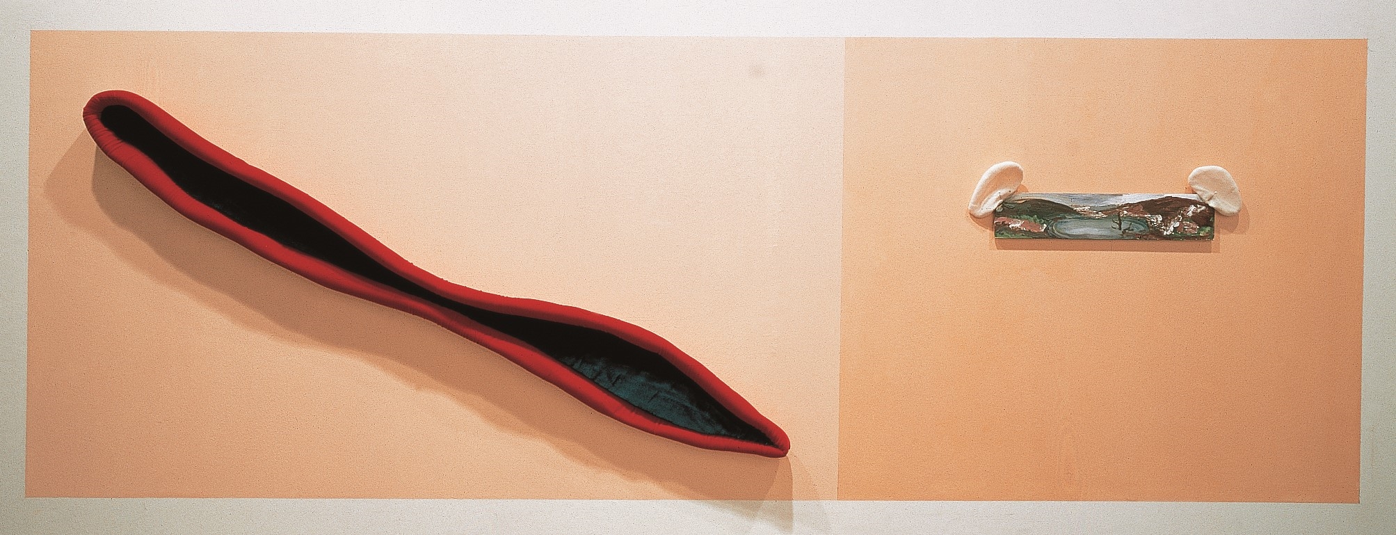Técnica mixta sobre pared: terciopelo, espuma, pintura sobre tabla, fieltro y gasa