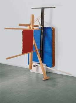 Hierro, madera hexacomb, cinta adhesiva y pintura