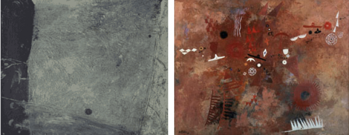 A partir de tendencias surrealizantes se genera el mundo mágico de Dau al set, mientras, las influencias Miró y Klee, poéticas del silencio y la fragilidad van abriendo el camino a una abstracción esencialmente lÃrica en las obras de Tà pies, Feito, Palazuelo y Sempere. Serenidad y equilibrio, composiciones rÃtmicas en colores, formas y planos subyacen en las obras de Oteiza, Guerrero o Vicente, mientras que el método riguroso y analÃtico del espaciocolor del Equipo 57 concreta un impulso determinante hacia la abstracción geométrica.