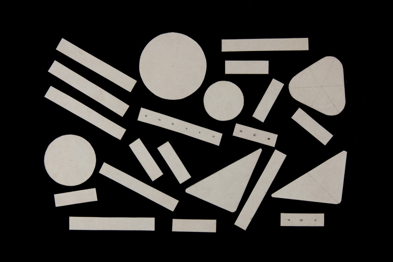 In 1935, Ferrant designed small pieces of an array of cardboard pieces. Some were made following basic geometric patterns while others were more complex and capricious. Ferrant suggested the young pupils to freely create shapes in a combinatory exercise. These small cardboard pieces and the exercises were called “Arsintes”, which is the blend of two concepts: “art” and “synthesis”. There were 11 groups of cardboard pieces but Ferrant used mainly 4 of them. He gave each of these 4 groups the following titles. “Ánfora”, “Grotesco”, “Armazón”, “Maniquí”. They now give their names to the title of our exhibition.