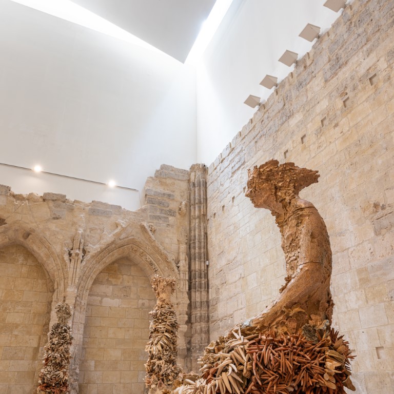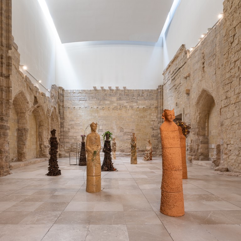 The installation in the Chapel opposes radically that of its predecessor, which displayed a fictitious architecture that could, paradoxically, go unnoticed. Camoni’s Colonne (Columns) series have architectural roots, such is the verticality that stems from its title. And yet they are powerfully anthropomorphic. Their presence is undeniable, but what is perceived in them is a profound ambivalence, as each of the slender figures appeals in equal measure to the human, the animal, the natural... Dreamlike notions circulate around them like a warm, light wind gently caressing leaves and branches, while echoes of mythical tales slip between them. But above all, what these pieces convey is an unavoidable commitment to the plastic quality of all artistic endeavour.
