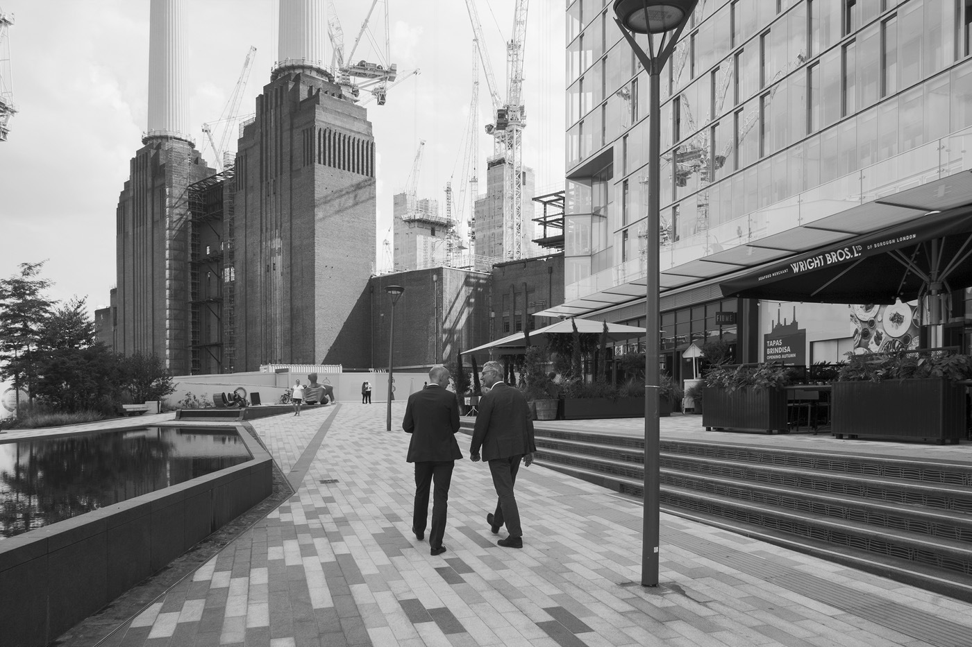 Garrido currently lives in London, where he has been observing the urban transformations taking place as a result of the suffocating pressure of the prevailing economic system. This is what has been keeping him busy since he moved there two years ago. The artist tells us that the capital of Great Britain is possibly where these changes are taking place most clearly, where public space is on the wane, under the institutionalized and permanent threat of the great private powers and very often with the collusion of the public authorities. The effect that this trend has on subjectivities is something that lies at the core of Garrido’s work, as he develops a kind of photography of uncorruptible documentalist rigour. His interest lies in both the way the city is growing and in the progressive disappearance of uniqueness, which is being replaced by a flagrant homogeneity. One of the most revealing images in the latest series shows the mythical power station of Battersea, an icon of British industrial heritage, which is just moments away from being turned into a shopping centre and luxury residential complex, surrounded by expendable buildings of commercial architecture and gardens which Garrido interprets not so much as public spaces but rather as clear examples of the impeccable corporate spaces which are proliferating, clones of each other, in the major western cities.