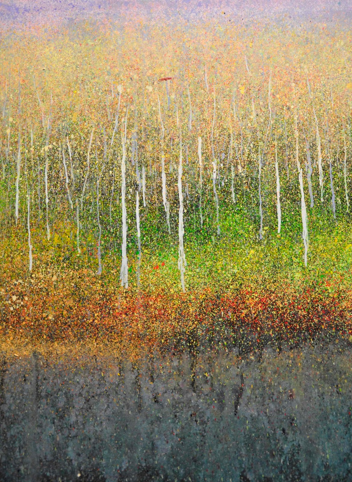 Sexta exposición de artistas locales en este año en el que se presentarán ocho muestras de creadores vallisoletanos, Pablo Giménez OlavarrÃa (Valladolid, 1972) se acerca en esta exposición a la naturaleza a través del efecto de la luz en la creación de atmósferas. En el último año está investigando en la creación de obras prescindiendo de la forma, pinta de una manera que le impide fÃsicamente anclarse al dibujo riguroso, pues sólo salpica el cuadro con minúsculas gotas de óleo muy diluido que de una forma aparentemente azarosa van recreando a través de la luminosidad el ambiente en el que está a gusto, que es la naturaleza. No se trata de un puntillismo académico ni teórico, si no de la plasmación de una percepción y sensación sin la distracción de los detalles, algo que se adentra a veces al lenguaje de la abstracción, pero que sigue siendo de raÃz figurativa, en la que se busca la esencia de los lugares.